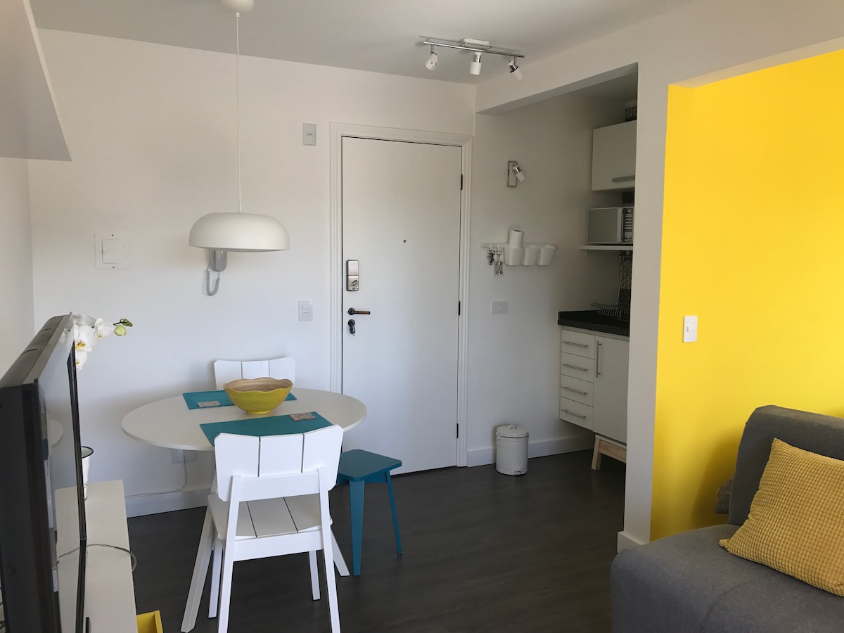 Studio recém reformado e decorado no Centro Cívico com: ar condicionado em todo o ambiente, cozinha completa, smart tv e churrasqueira privativa O prédio oferece piscina aquecida, academia, terraço panorâmico, sauna, brinquedoteca, jacuzzi e lavanderia (paga) Ideal para até 2 pessoas, fornecemos roupas de cama de tolhas de 1ª linha Localização excelente, perto de shoppings, mercados, restaurantes e padarias com fácil acesso para explorar a cidade Estacionamento pago no local disponível