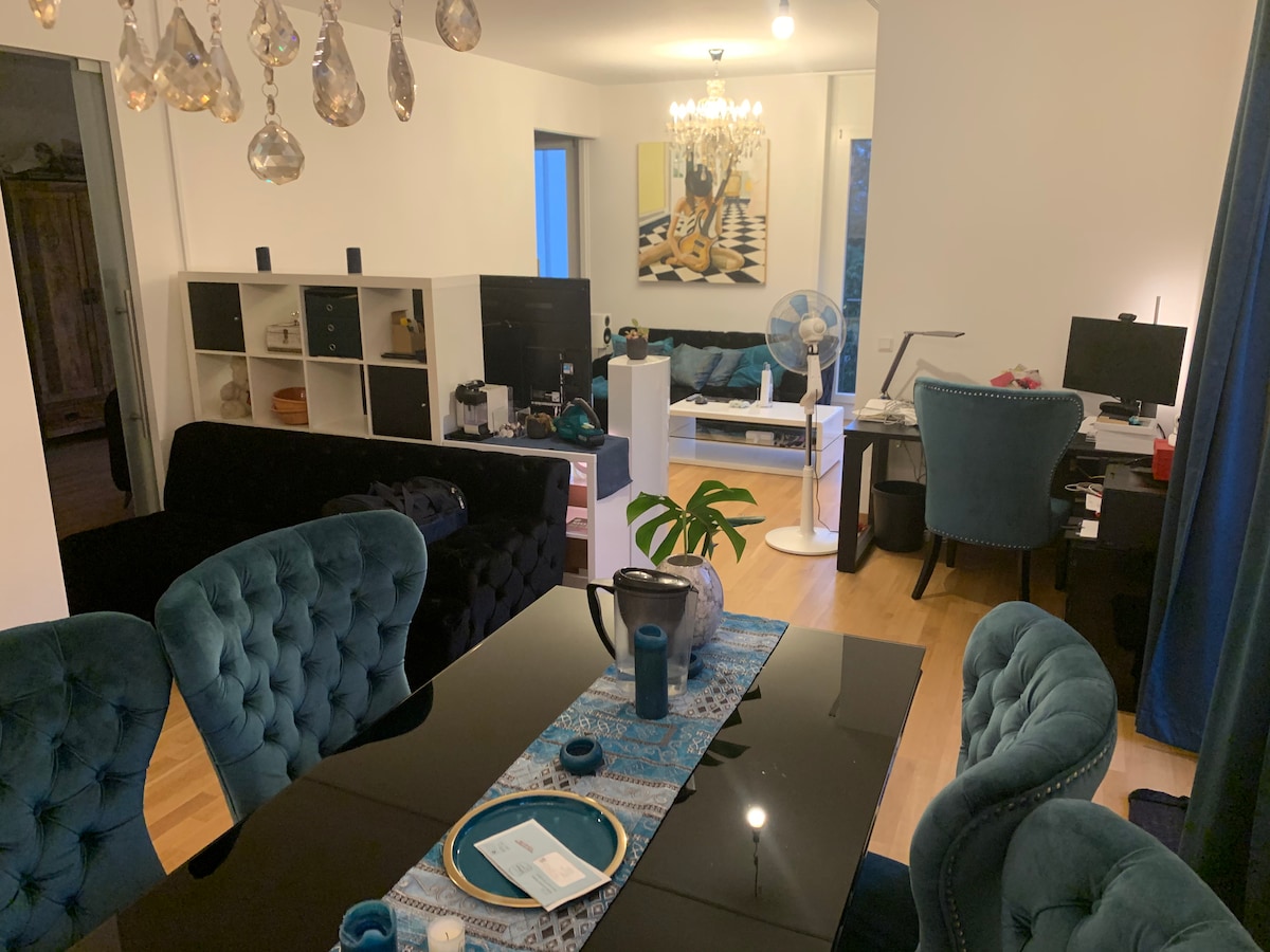 This large private 2-room guest suite (68 sqm / 732 sq ft) is located in an independent wing of our apartment, dedicated specifically to our guests and family members staying over at our place. It is completely independent and very private, located on the first floor, facing the calm and charming inner garden of a new construction condominium building with floor to ceiling french windows and luxurious indoor and outdoor finishings. A private elevator leads directly into the apartment, where a separate door opens directly into your private suite area. The space features elegant heartwood floors with central heating, a sleek, luxurious and modern bathroom with rain shower and separate bathtub, as well as a fully equipped modern high-end kitchen. The living spaces are elegantly furnished with lots of love to small details. The bedroom features a king size (180x200cm) luxurious and very comfortable boxspring bed, where good night's sleep is guaranteed! All rooms of the suite face calm idyllic gardens, that will make you forget that you're actually staying in the city center.