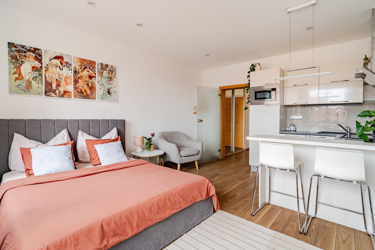 时尚的Invalidovna公寓,提供免费停车位