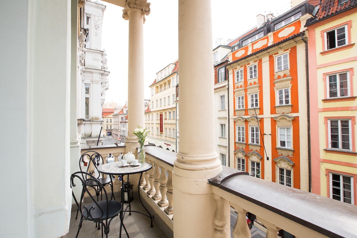 ☆ Panoramic view of the Charles Bridge Tower ☆ Distance to a tram station - 2 mins ☆ Soundproof windows ☆ Supermarket and ATM in the house ☆ Comfortable bed ☆ Large rooms with high ceiling Take an ultimate experience to stay in a exquisite apartment connected to the famous Charles Bridge. The 14th house is a cultural heritage. The newly redesigned flat is a mix of timeless elegance and luxury. The flat is surrounded by nice restaurants and famous sights, all within a walking distance.