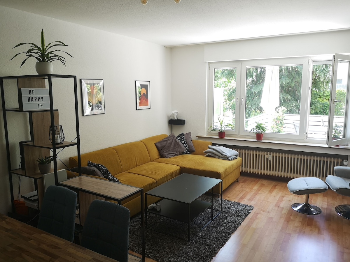 Sunny, exclusive 1-room apartment in Cologne city center for 1-2 people; open floor plan, underfloor heating, comfortable bed (1.40 x 2m), stylish living area, kitchen, high-quality built-in furniture; modern bathroom design with daylight / exclusive furnishings; high-speed WiFi up to 100 mbit/sec; elaborate lighting design 3 min. to the shopping streets, restaurants and bars on the doorstep, 800 meters to the cathedral, freeway A57 by car in 5 min. Bookings of 90 days or more on request.
