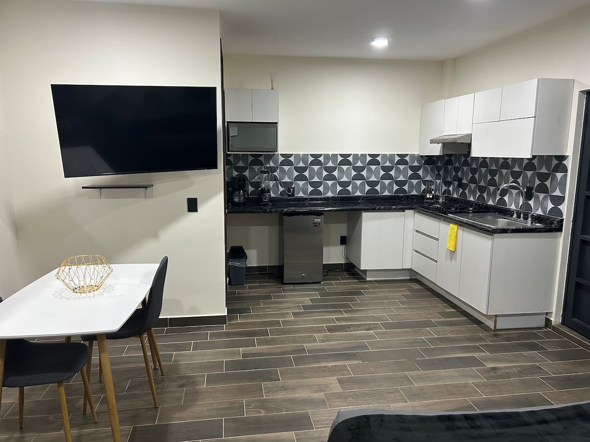 Disfruta la cercanía al Poliforum en nuestro departamento recién remodelado, ideal para descansar o trabajar con acceso a estacionamiento privado. Relájate en nuestras cómodas camas y disfruta de entretenimiento ilimitado con TV inteligente y alta velocidad de internet inalámbrico. Además, facilitamos tu estancia con facturación sencilla. Vive León desde una ubicación privilegiada, perfecta para tu próxima aventura o compromiso laboral.