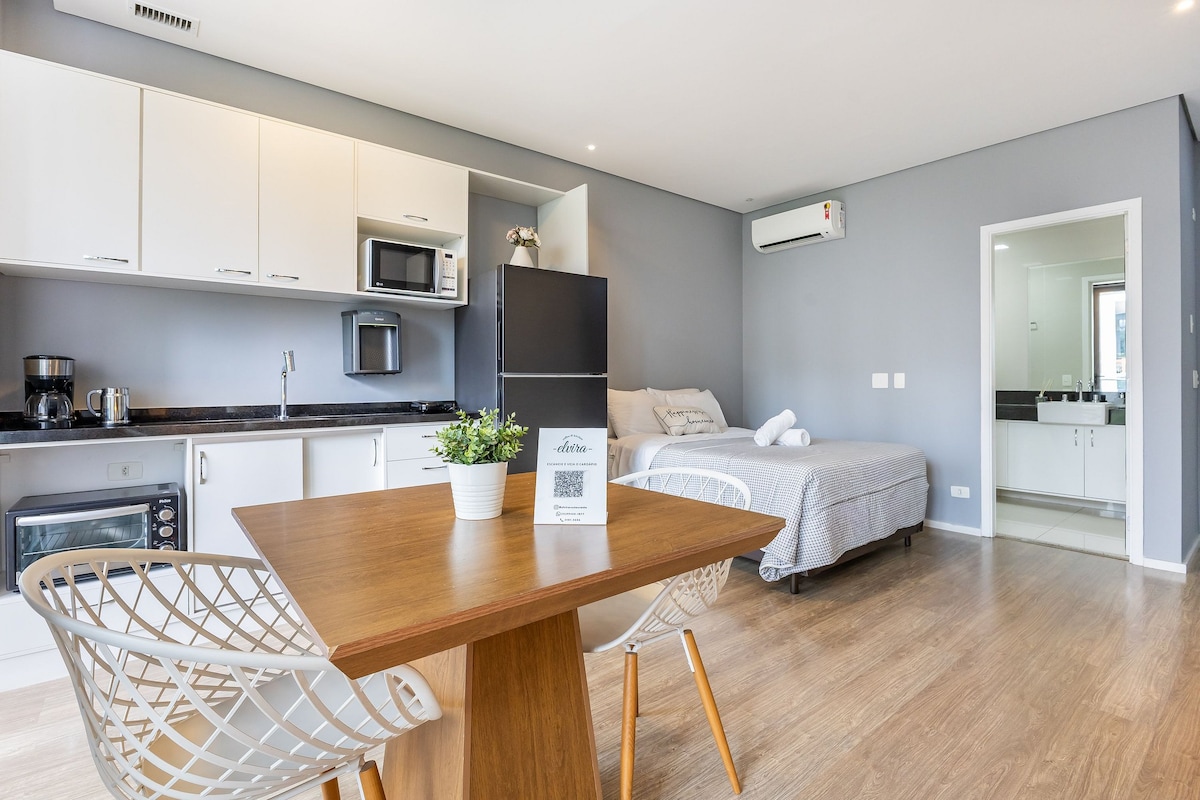 Descubra o equilíbrio perfeito entre estilo e funcionalidade no Essenza, um estúdio moderno e acolhedor no coração da Vila Buarque no centro de São Paulo. Com decoração minimalista e toques bem pensados, o espaço oferece tudo o que você precisa para uma estadia prática e confortável, próximo ao metrô, vários cafés charmosos, restaurantes renomados e toda estrutura do prédio com piscina semi aquecida, academia, cooworking, lavanderia entre outras amenidades.