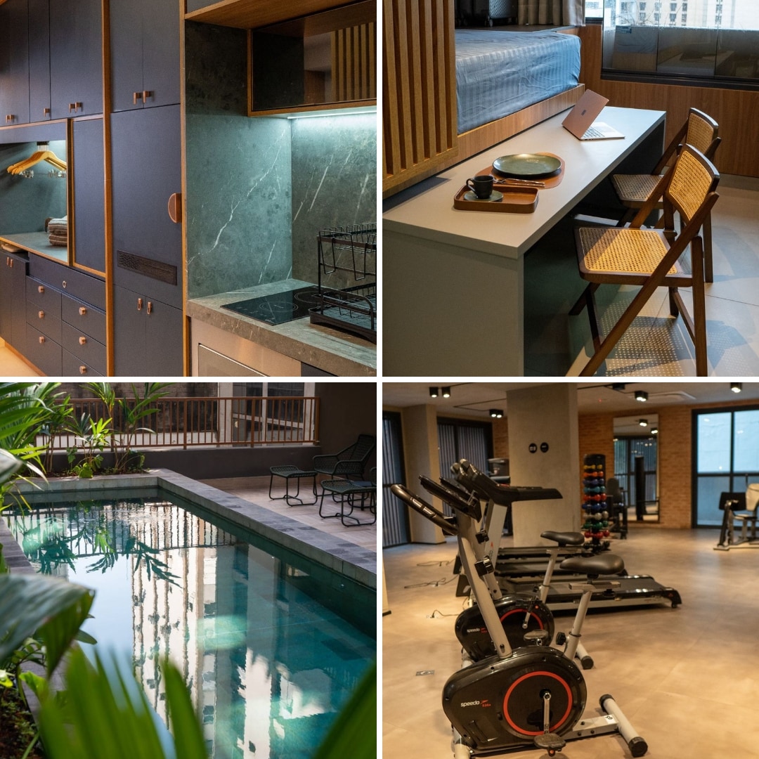 Flat de design assinado por Adriana Penteado nos Jardins, a 2 quadras da Av. Paulista e 4 da Rua Oscar Freire. Ideal para quem valoriza conforto e localização estratégica. O apartamento oferece cozinha equipada, Wi-Fi de 500MB, garagem com manobrista e serviço de camareira em dias úteis já incluso. Acesso prático por código, sem uso de chaves. Perfeito para viagens a trabalho ou lazer, com a sensação de estar em casa e a praticidade de um hotel.