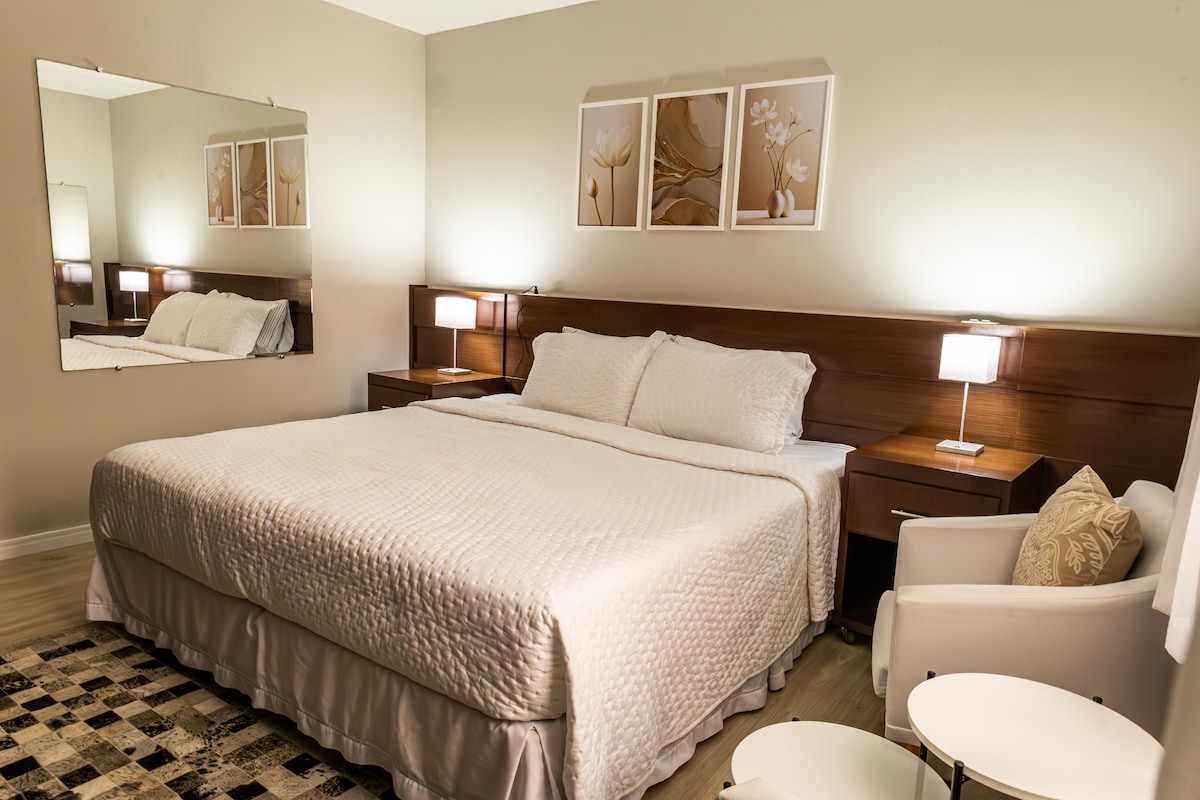 Flat Hotel Congonhas, king-size bed, London decor, 4-star hotel, 24-hour reception Full-menu restaurant and room service, great fitness area. Super comfortable and ventilated suite, soft king-size bed, air conditioning, gas shower, kitchen, microwave and minibar, work area, closets, 35-inch TV to relax after a tiring day of meetings. Located next to Congonhas Airport, practicality and comfort. Parking included. Breakfast not included. R$40 per room.