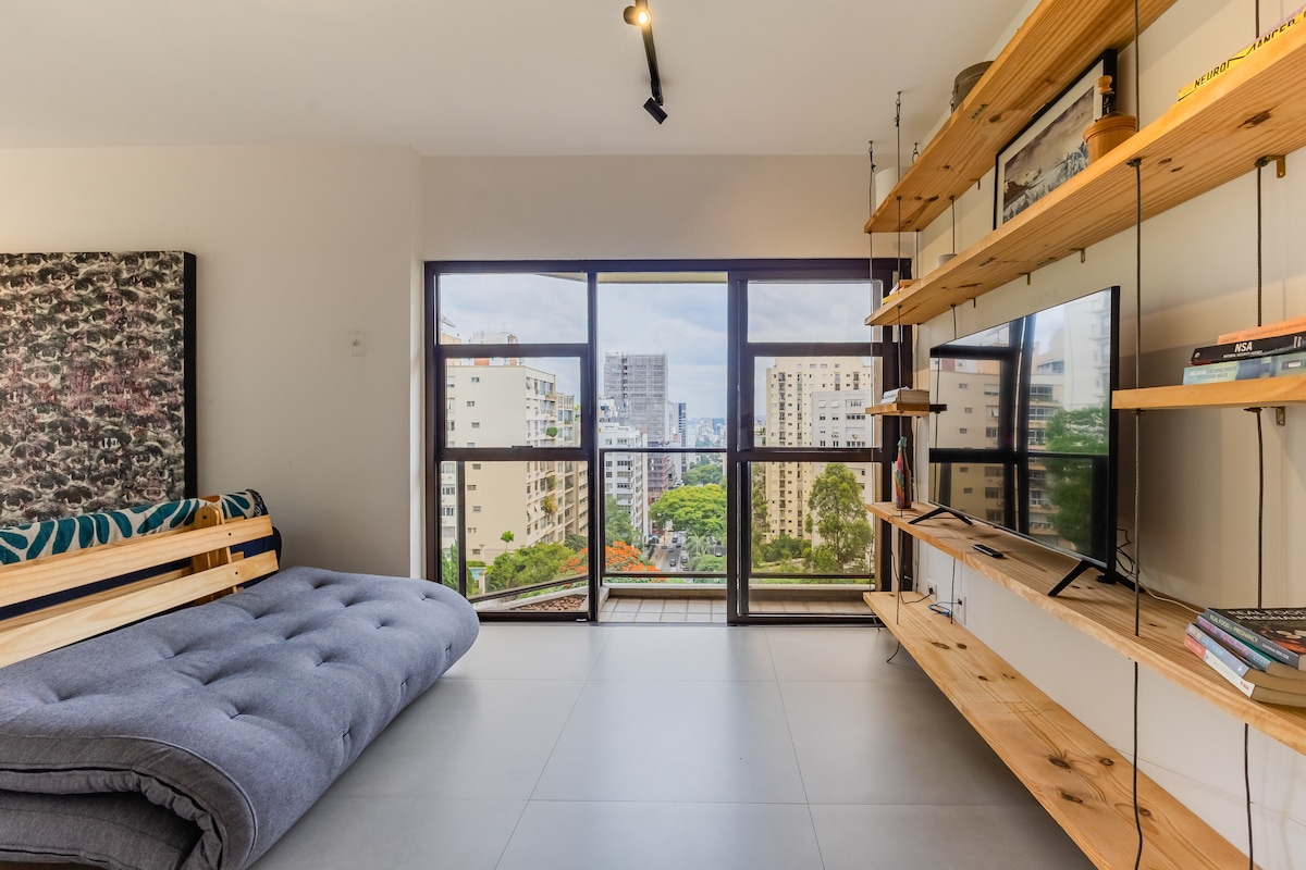 Studio charmoso e aconchegante em condomínio com infraestrutura completa para lazer, descanso e trabalho. Foi planejado para oferecer conforto aos hóspedes durante as estadias. Ótima localização, ao lado do Shopping Frei Caneca, a 6 minutos a pé do Metrô Higienópolis-Mackenzie, a 8 minutos da Avenida Paulista, próximo de bares, restaurantes, mercados e hospitais.