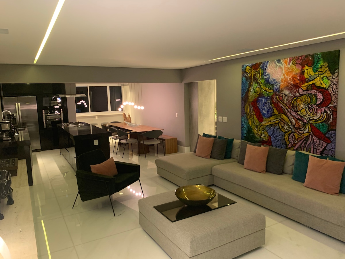 Beautiful new apartment in Cotovia Z Moderna Cotovia With wi-fi, equipped appliances for short and long stays, Gym, club leisure pool, coworking space, with 1 parking space, 201 block Eucaliptos Metro and Shopping Ibirapuera, 3 km from the Airport de Congonhas, 2.8 km Parque Ibirapuera region close to shops, bars, restaurants, supermarkets.