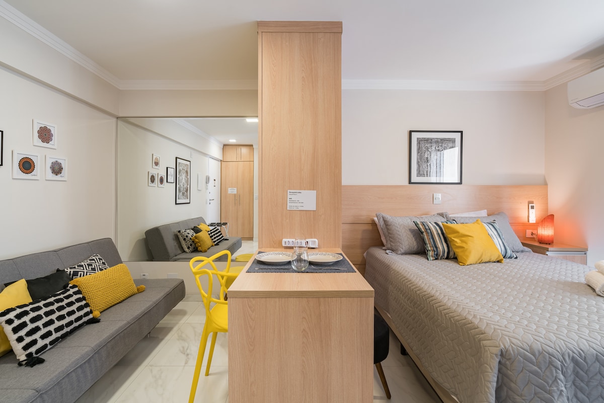 Curta uma experiência incrível em um aconchegante Studio novinho. Studio muito bem equipado para estadia de um casal, com todos os utensílios novos. Ótima localização, perto do Shopping Frei Caneca, da Rua Augusta , Rua Consolação, de Hospitais renomados. Perto do Metro Higienópolis-Mackenzie para fácil locomoção. Caminhando para a Av. Paulista são apenas 12 minutos. O Espaço é Ideal para quem vem a negócios (coworking no prédio), turismo ou a procura dos hospitais e faculdades da região.