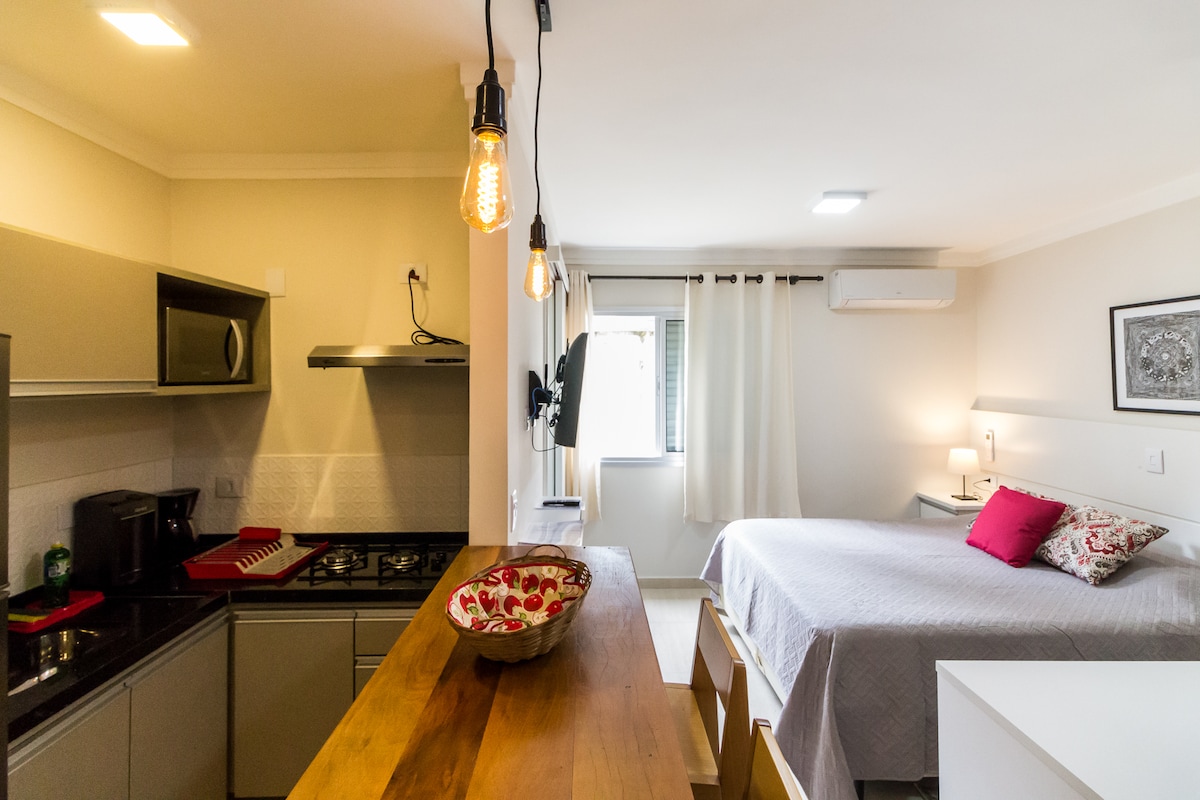 Curta uma experiência incrível em um aconchegante Studio novinho. Studio muito bem equipado para estadia de um casal, com todos os utensílios novos. Ótima localização, perto do Shopping Frei Caneca, da Rua Augusta , Rua Consolação, de Hospitais renomados. Perto do Metro Higienópolis-Mackenzie para fácil locomoção. Caminhando para a Av. Paulista são apenas 12 minutos. O Espaço é Ideal para quem vem a negócios (coworking no prédio), turismo ou a procura dos hospitais e faculdades da região.