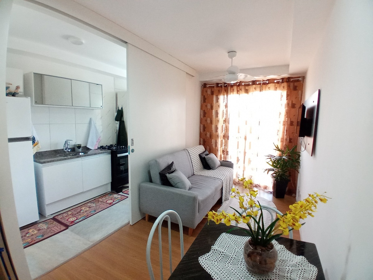 Apartamento novo, simples e funcional. Composto por sala/quarto, cozinha e banheiro. Capacidade para 3 pessoas. Tem uma cama de casal e uma bicama. Tem wifi, ar condicionado, smarttv, guarda-roupas, rede de proteção nas janelas, geladeira, fogão 4 bocas com forno. Prédio com ambiente familiar, porteiro 24h. 500m da Rodoviária Novo Rio e 400m do Terminal Gentileza, que tem modal para todos os bairros da cidade, inclusive VLT, integração c/ o metrô na Central Brasil. Próximo ao INTO.