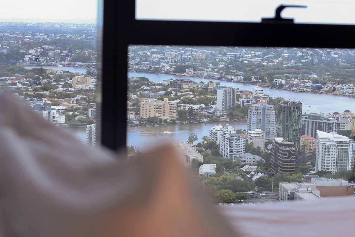 Our stunning riverview & botanic-garden view king-sized one bedroom apartment is perfectly for short term and long term stays. Situated in inner CBD, Brisbane’s SkyTower building is close to everywhere! Apt features include: -Spacious bedroom with King size bed and built in wardrobe. Fresh towels and linen provided. -Sofa bed in living area -Central air conditioning -Gas stove top with full chef’s kitchen -Hide away laundry area -Washing machine and dryer -Coffee machine -Smart TV -Free WIFI