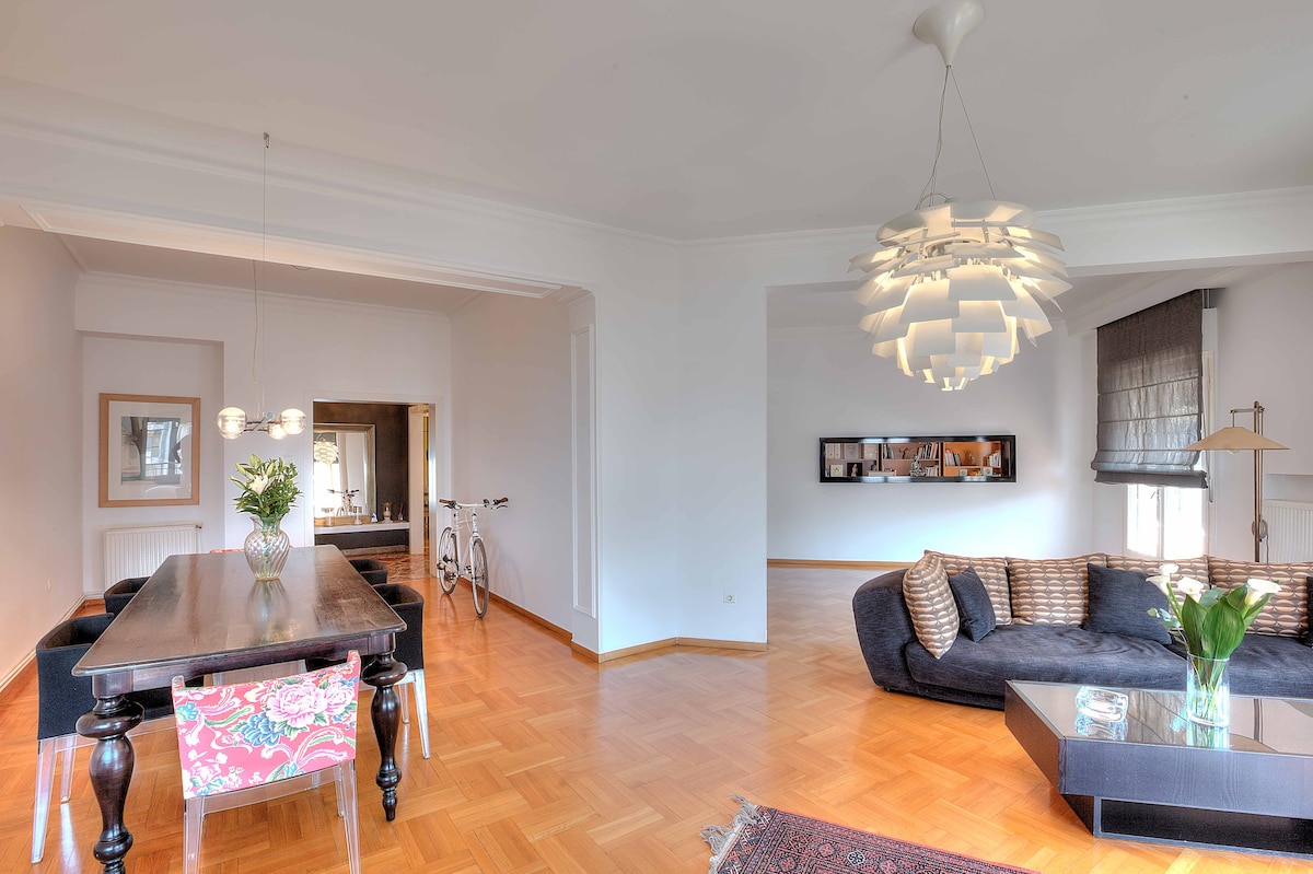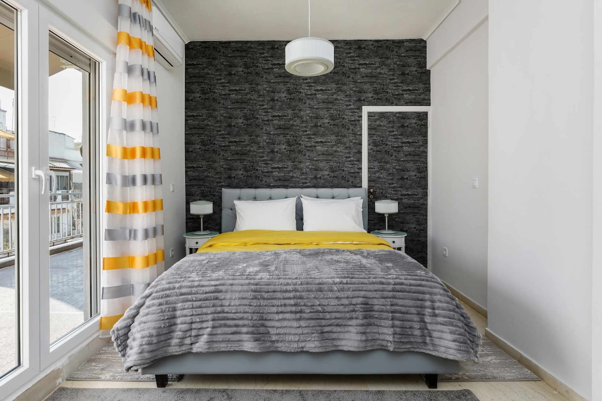 Comfortable apt right in the BEST neighborhood of the city center! -2 steps from Navarino square & Tsimiski street - the city's shopping area -6 min walk from the Waterfront & the White Tower ! -Spacious, bright with 2 queen size beds (1 bed + 1 sofa bed) -Wifi 300mbps, AC with ionizer, insect screens, water filter -Big supermarket underneath -Parking at economical rates -Recently renovated, Fully equipped Ideal for couples, single travelers, executives, friends & families with children.