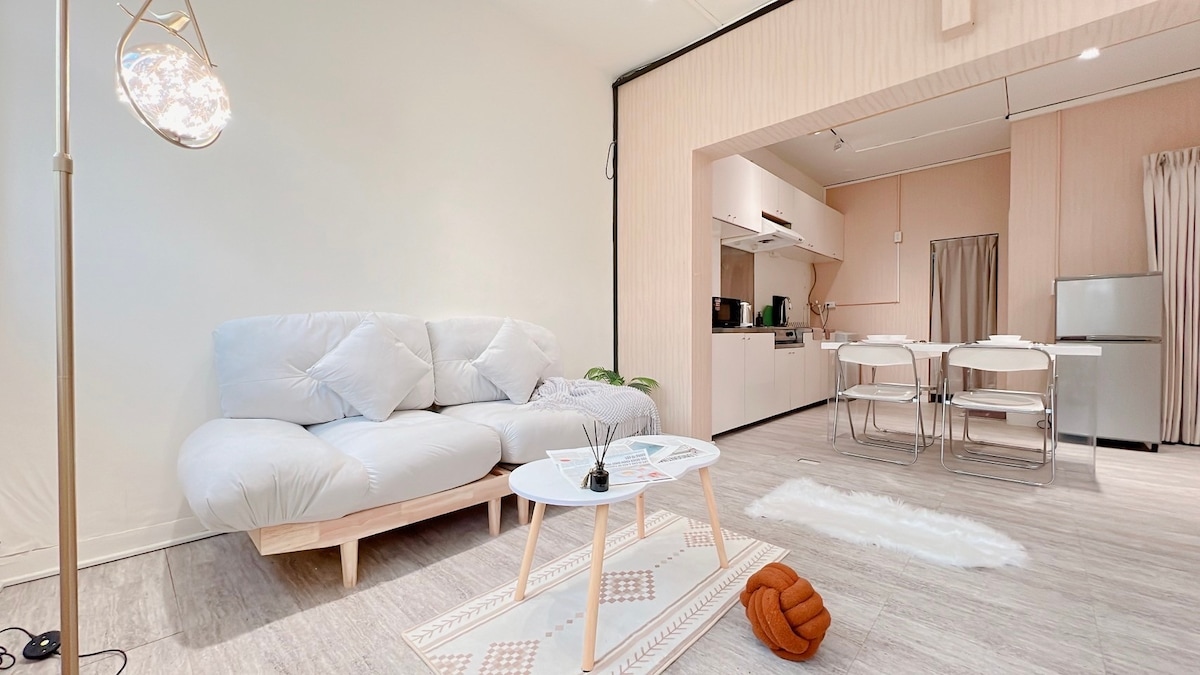 Escape the hustle and bustle of the city without sacrificing convenience. Our stylish apartment is perfectly located within Taipei Main Station, offering easy access to all that Taipei has to offer. With a well-equipped kitchen, cozy balcony, and a stylish bedroom complete with a 75-inch TV and desk area, you’ll have everything you need for a comfortable and relaxing stay. Unwind in the luxurious bathtub after a long day of exploring.