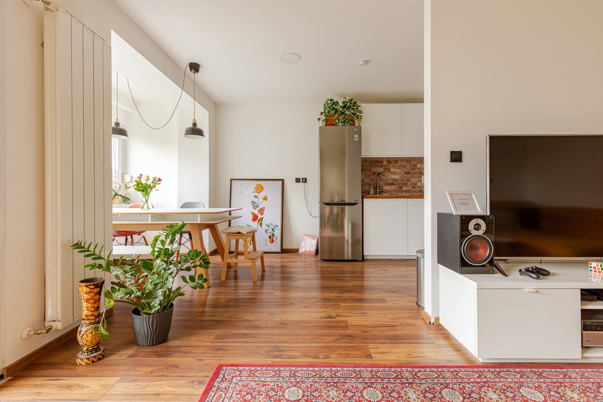 BRAND new elegant apartment in the CITY CENTER less then 10 min walking distance from the main square and train station. Situated in a peaceful backyard on the main street so you can enjoy quiet nights. There is one bedroom with queen size bed, living room with TV + NETFLIX and pull out sofa (queen size), bathroom with toilette and spacious walk in shower separated. All furniture and appliances are brand new. FREE tea&coffee,FREE towels.