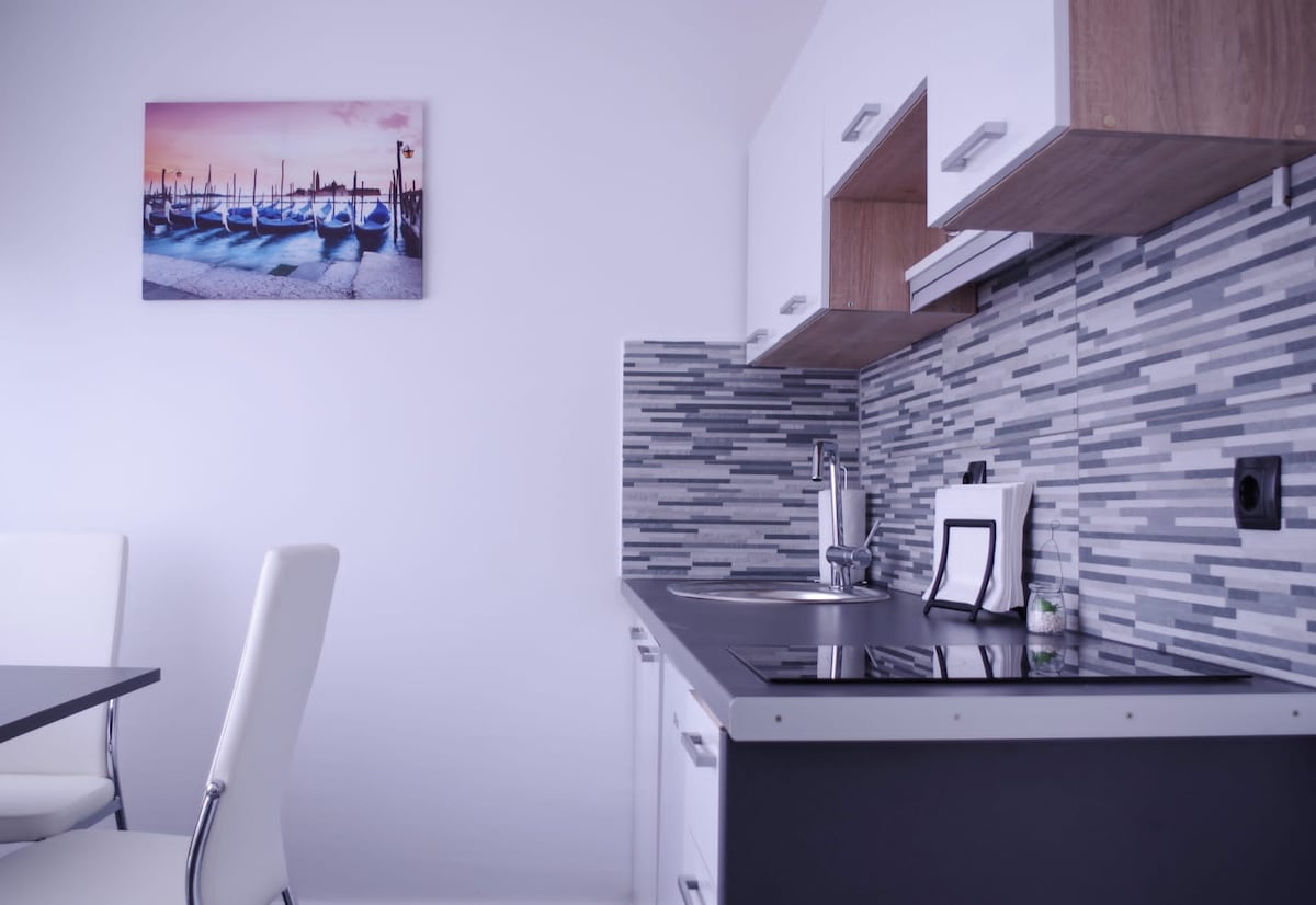 BRAND new elegant apartment in the CITY CENTER less then 10 min walking distance from the main square and train station. Situated in a peaceful backyard on the main street so you can enjoy quiet nights. There is one bedroom with queen size bed, living room with TV + NETFLIX and pull out sofa (queen size), bathroom with toilette and spacious walk in shower separated. All furniture and appliances are brand new. FREE tea&coffee,FREE towels.