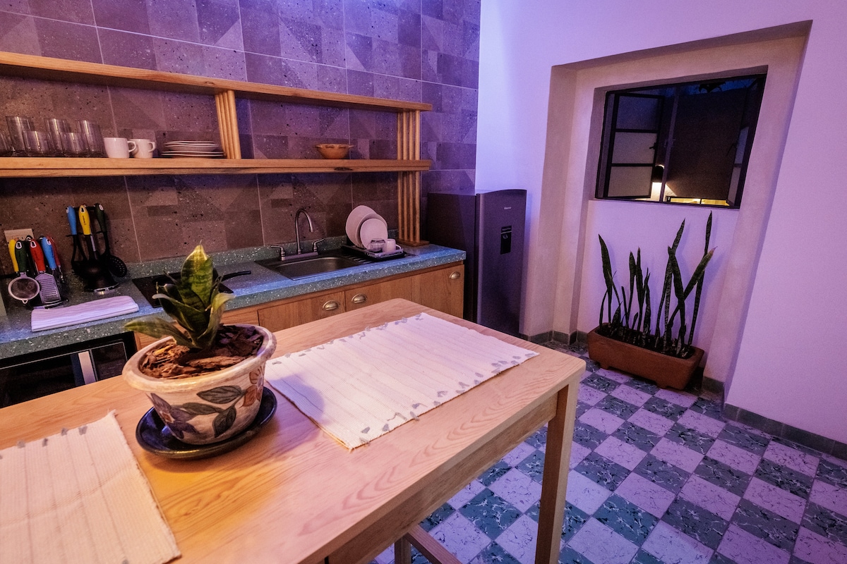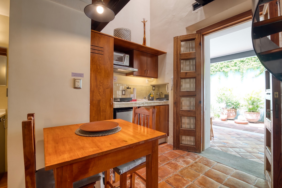 Disfruta de la sencillez de este alojamiento tranquilo y céntrico. Con una ubicación extraordinaria, podrás caminar hacia los mejores lugares en el centro de la ciudad, un lugar cálido, espacioso, lleno de luz y de quietud. Aquí podrás descansar o aprovechar para trabajar con toda la tranquilidad y comodidad que necesitas. Tiene vista a un hermoso jardín donde podrás disfrutar del canto de los pájaros y de las plantas. Vive Oaxaca desde este hermoso lugar.