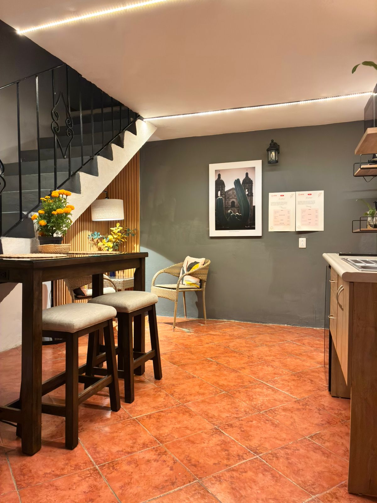 Indulge in the exquisite JUANA, a private loft spanning 62 m2 in our boutique apartment complex. Created with families in mind, it offers a dining room and kitchen at the entrance, a mezzanine bedroom with a desk and sofa bed, and a lower-level bedroom with a bathroom and living room. Enjoy two 43-inch 4K TV screens, Wi-Fi, and the convenience of a central location in Oaxaca's beautiful city centre. Within walking distance of the zocalo and other attractions, JUANA ensures an unforgettable stay.