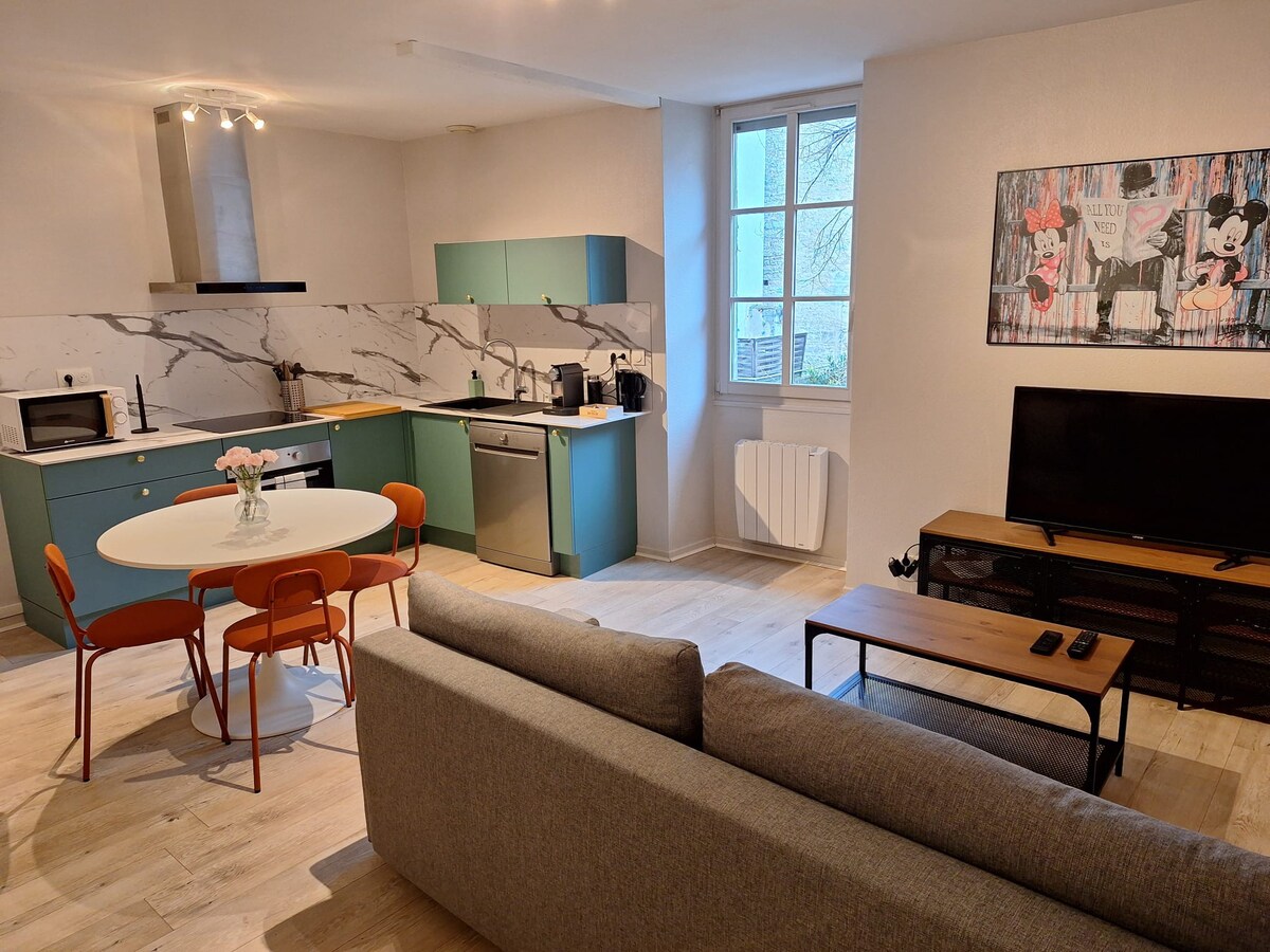 ! Logement non fumeur ! Joli studio (rénové en janvier 2022) avec sa propre salle de bain et kitchenette, pouvant accueillir jusqu'à 4 personnes. Le studio se situe rue d'arènes, au 2ème étage sur cour; à deux pas du pont battant, quartier en plein centre et vivant. Le quartier est désormais borné et l'accès en voiture à notre rue n'est plus possible. Il faut se garer en périphérie (voir les parkings conseillés plus bas) et ensuite marcher quelques minutes à notre logement. Fibre via wifi.