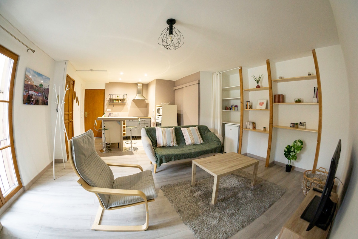 Enjoy my accommodation for its unique location in the heart of the most picturesque pedestrian street in Dijon Historic Centre (2 steps from the famous owl). Charming Bright studio of 35 m2, renovated, will seduce you with its romantic decoration and fully equipped. A small and lovely terrace with a view over the roofs of Burgundy. Your perfect home, for one or two people, to easily discover all the wonders of Dijon. ! The apartment is located on the 3rd floor without elevator.