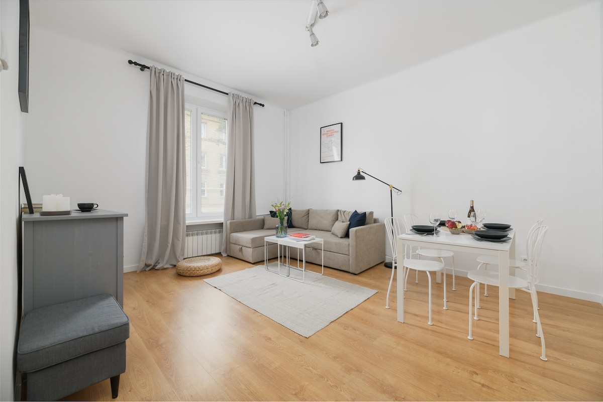 Parking space 🅿️ included in your stay! Cozy, modern and spotless apartment in the very heart of Warsaw ⭐ ✅ Fast fiber internet 180 Mb/s – perfect for work and entertainment 🚇 Metro just 47 seconds’ walk from the building 🏙 Palace of Culture, museums, restaurants, cafés and clubs right next door Whether you are visiting for business or leisure – this place will make your stay in Warsaw truly special. ⭐ Central location – everything that matters within walking distance!