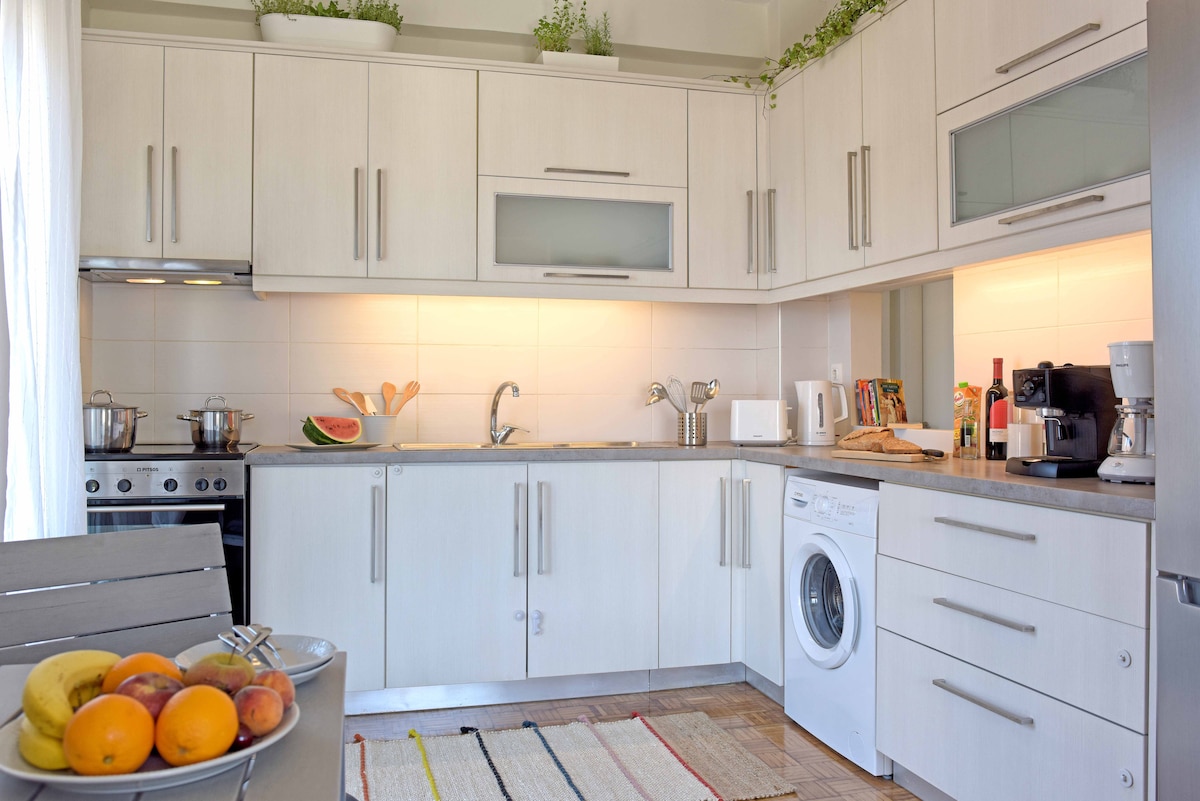 Centrally located attic apartment in Corfu. 15' walk to the airport, 15' to the city center, 2' to the green bus station and city bus. Fully equipped kitchen, spacious living room, smart TV, dedicated workspace, fast and free wifi, small balcony and AC in every room. Ergonomic mattresses for comfortable speep, storage space and free parking. You can self check-in with the smart locks. Everything you need for a comfortable and memorable stay. Perfect for couples, families or groups of friends.