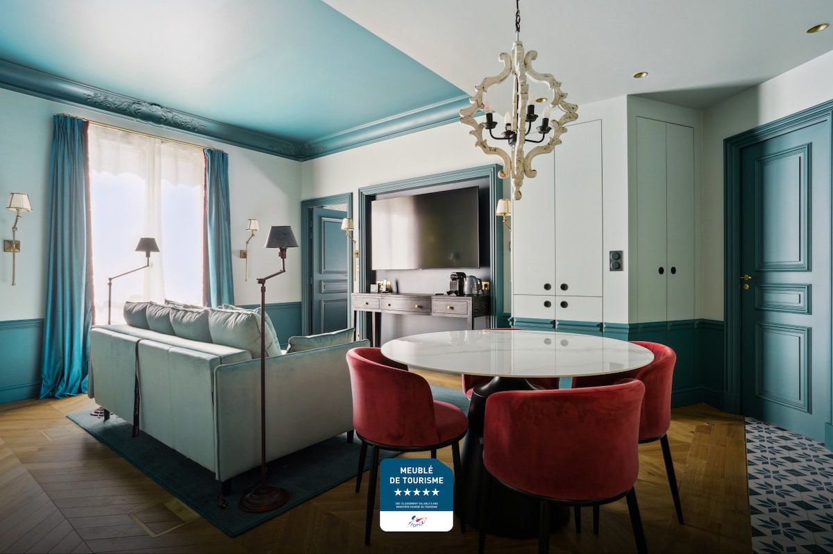 Enjoy a magnificent stay in a luxurious 50 m² apartment with air conditioning and a jacuzzi, spacious and bright, located near the Madeleine, Concorde, and Opéra squares. It includes a bedroom with a walk-in closet, a living room, a kitchen, and a bathroom. Our team is at your service to make your stay in Paris a unique and unforgettable experience.