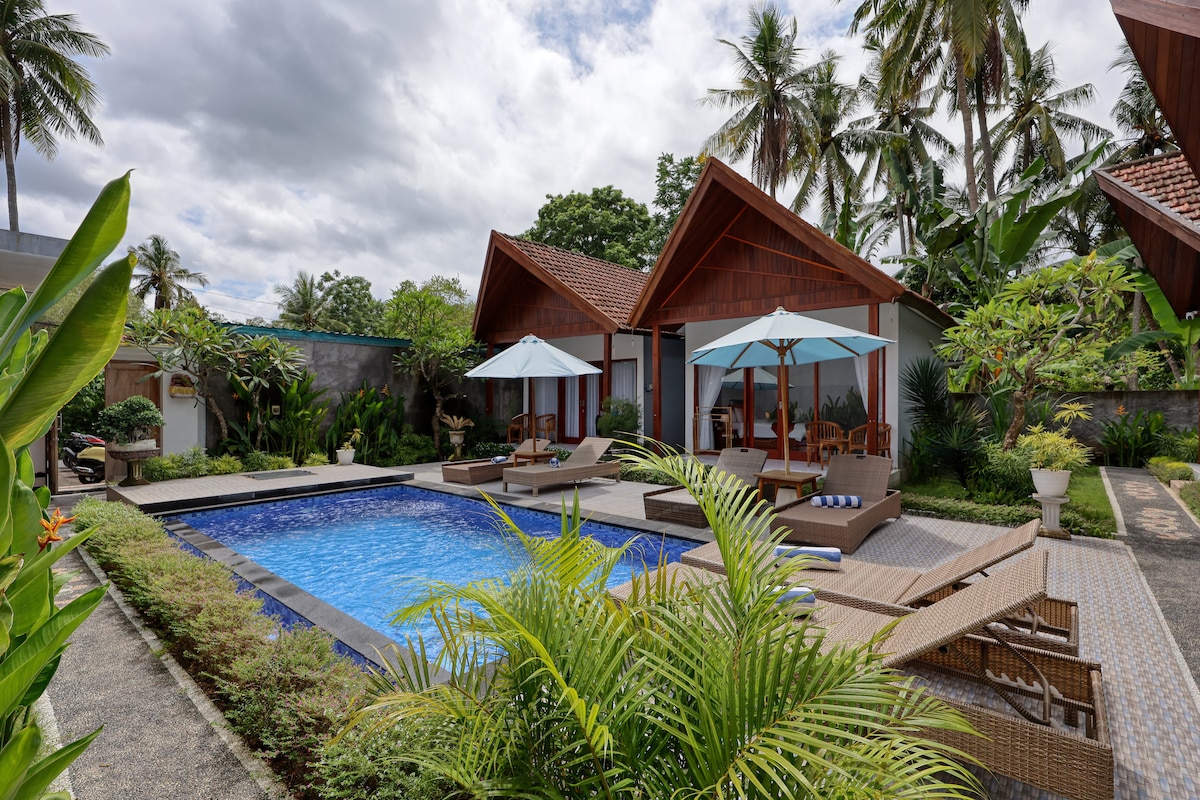 Toro Cottage offer comfortable stay with pool, AC, Wi-Fi and free breakfast. Located 4.5 km from Banjar Nyuh harbor and 4.6 km from Crystal bay beach Nusa Penida, easy to find because situated in roadside of the main road. The cottage has a patio facing to the pool and you can enjoy the green view of Nusa Penida hills in the cross of the street. The guest like to stay here because easy to find and easy access to all tourism places from here. We also offer fast boat ticket and scooter rentals.
