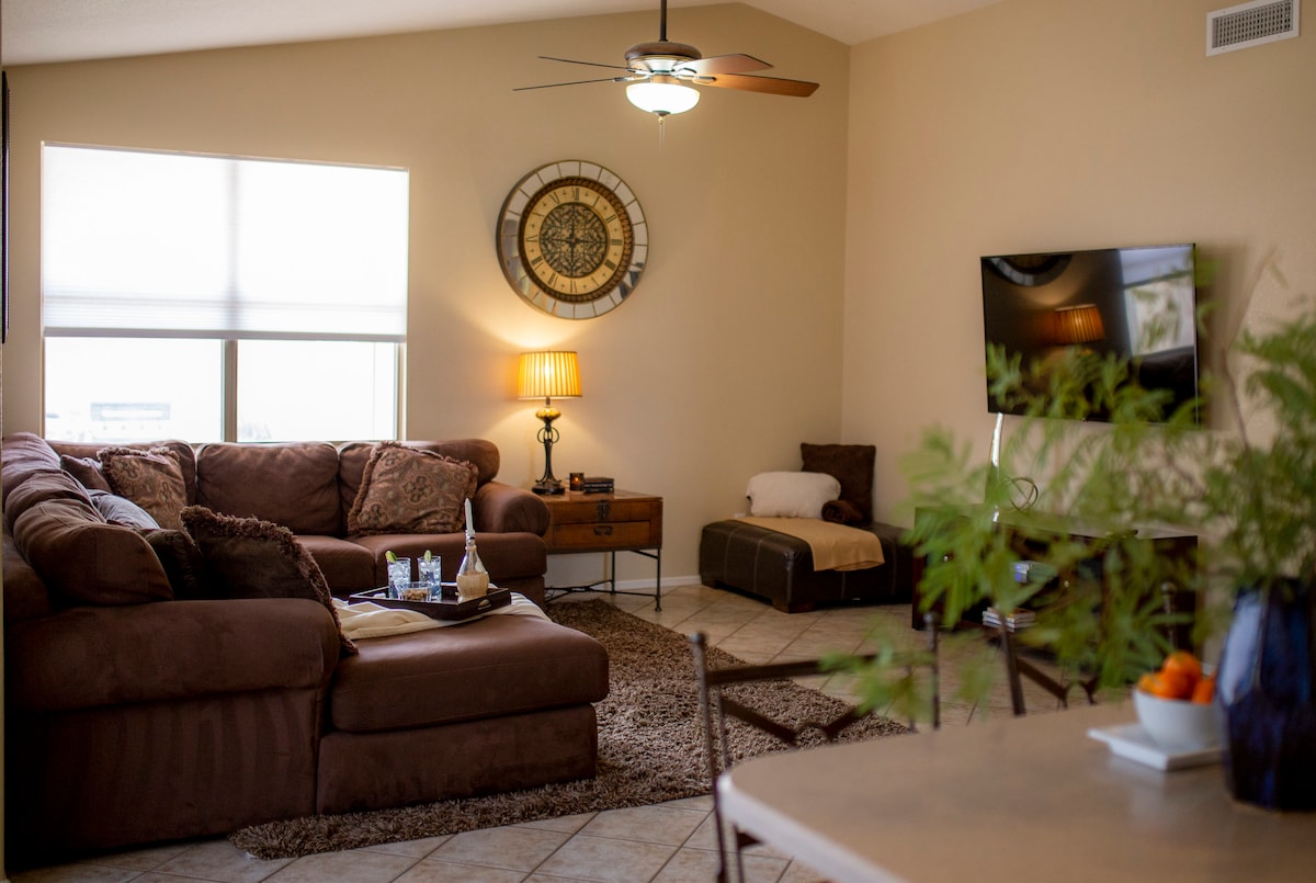Welcome to Scottsdale Great Escape, your spacious and sunlit retreat. The open layout invites an abundance of natural light, creating a warm and inviting atmosphere. Whether you're here to work or unwind, we've got you covered with high-speed WiFi in the dedicated workspace, a fully equipped kitchen, a delightful backyard patio with an outdoor grill, and a cozy sofa where you can unwind and enjoy your favorite TV shows. For added convenience, there is an attached garage.