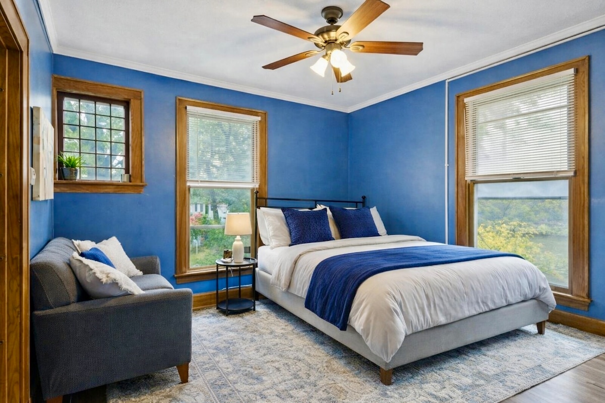 Cozy home Lakeside Hideaway, come enjoy your private entrance to the second floor unit. Perfect for families, couples, or working remotely. The apartment is located on the northwest of the home with its own sidewalk. This spacious unit is in a quiet neighborhood and walking distance to 2 beaches, marina that sits on Muskegon Lake, walking trails, public boat launches, and a downtown shopping & dining district. The entire house runs on solar and minutes from lake Michigan and Muskegon.
