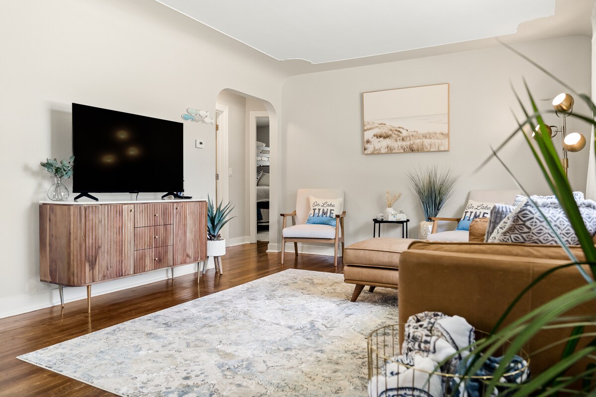 Welcome to your stylish 2 bedroom, 1 bathroom getaway in Muskegon! This professionally managed, designer-furnished home features everything you need for a comfortable stay — whether you’re here for beach days, business, or a cozy weekend away. Located on a quiet residential street, this home is close to downtown Muskegon, Lake Michigan beaches, parks, trails, and local restaurants — while offering a peaceful space to unwind. And yes… pets are absolutely welcome 🐶