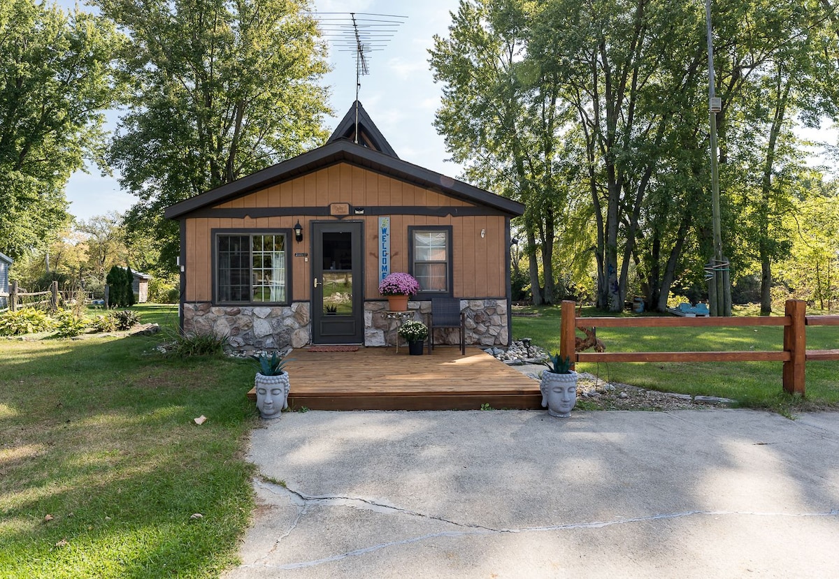 Welcome to our cozy little tiny home tucked away in Bridgeton, Michigan. This special cabin was thoughtfully created by the owners with the hope that guests could slow down, relax, and enjoy a peaceful retreat surrounded by nature.Every detail of this tiny home was carefully chosen to make the space feel warm, comfortable, and inviting. After a day of exploring the area or spending time by the nearby river, you can unwind in the private hot tub, curl up by the indoor fireplace, or gather around