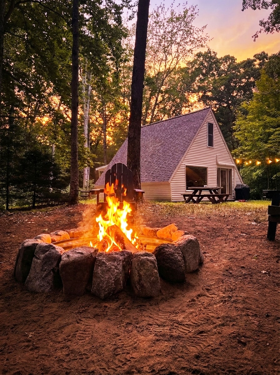 小木屋带热水浴缸和火坑+可通往湖泊/海滩/泳池