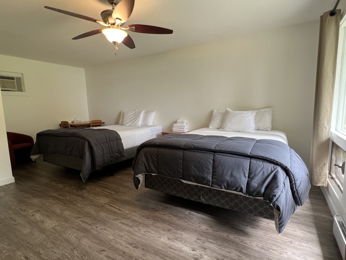Welcome to our beautiful and large Motel Room equipped with 3 pcs Bathroom, 2 queen size beds with Comfortable linens, a Microwave, A medium size Fridge, Cable TV, wifi. You’ll love sharing photos of this unique place with your friends where you capture mature trees, the beauty of true North. We are situated on Highway 11 North Kilworthy. Come in and experience the North. Note: **Additional guest and Pets required additional payment**