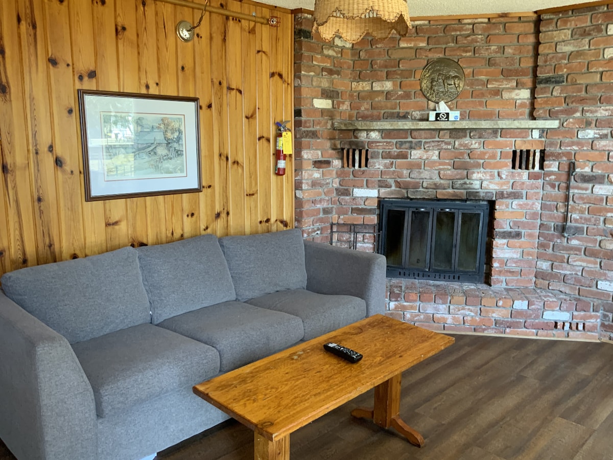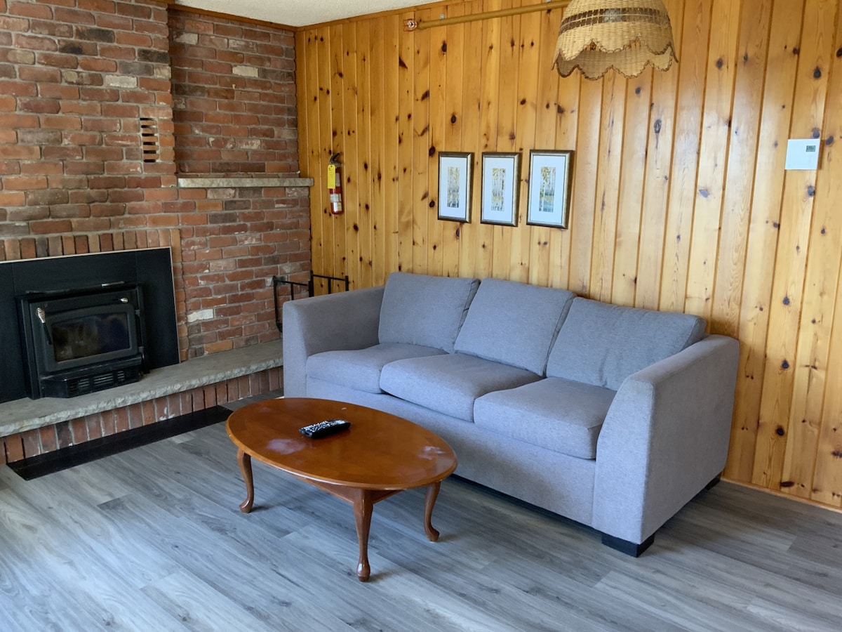 Just Minutes From The Lake and Boat Launch Firehouse Lodge Modern Walk out Deck Room, Full Bathroom, Queen Beds, Wifi, 50″ LED Satellite Tv, Fridge, Microwave, kitchenette. Located on 8 Acres, on the property you will find lots to do, including Volleyball, Multiple Beautiful Trails, Fire Pits, Picnic Tables, Lounging Chairs and More! 1 Bedroom, 3 Bedrooms and 5 Bedroom waterfront cottages are also available. Booking options: Monday to Wednesday, Wednesday to Friday and Friday to Monday