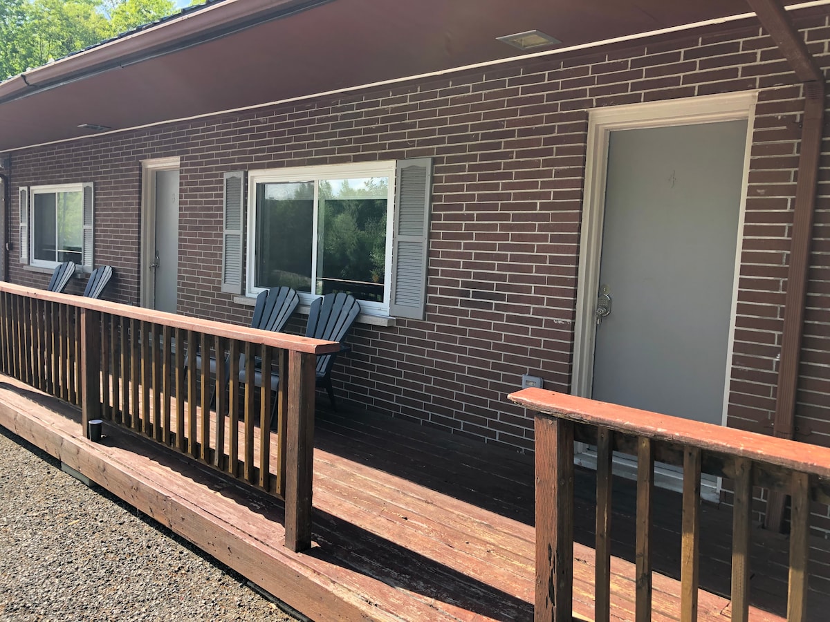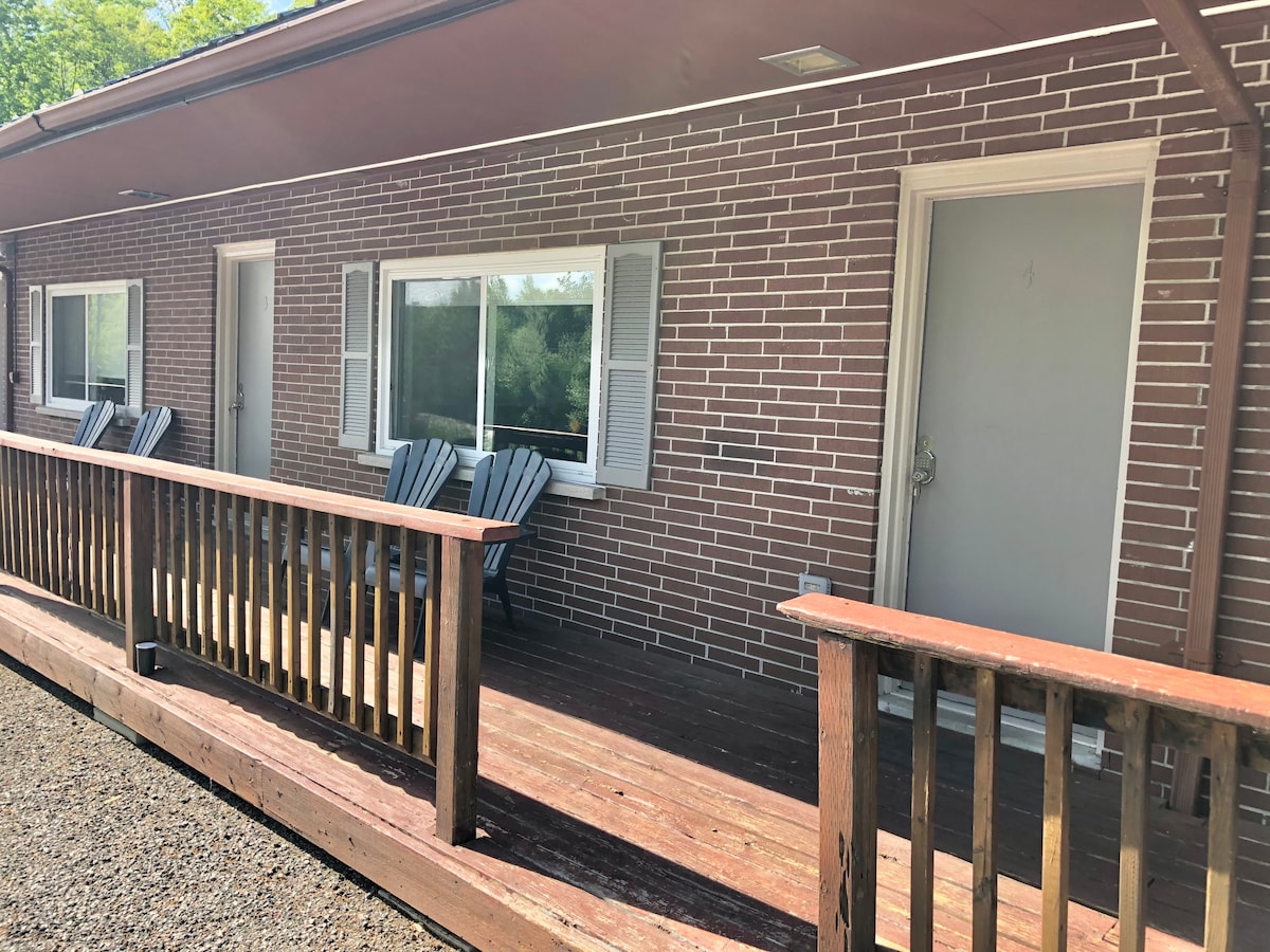 Just Minutes From The Lake and Boat Launch Firehouse Lodge Modern Walk out Deck Room, Full Bathroom, Queen Beds, Wifi, 50″ LED Satellite Tv, Fridge, Microwave. Located on 8 Acres, on the property you will find lots to do, including Volleyball, Multiple Beautiful Trails, Fire Pits, Picnic Tables, Lounging/ Tanning Chairs and More! 1 Bedroom, 3 Bedrooms and 5 Bedroom waterfront cottages are also available. Booking options: Monday to Wednesday, Wednesday to Friday and Friday to Monday