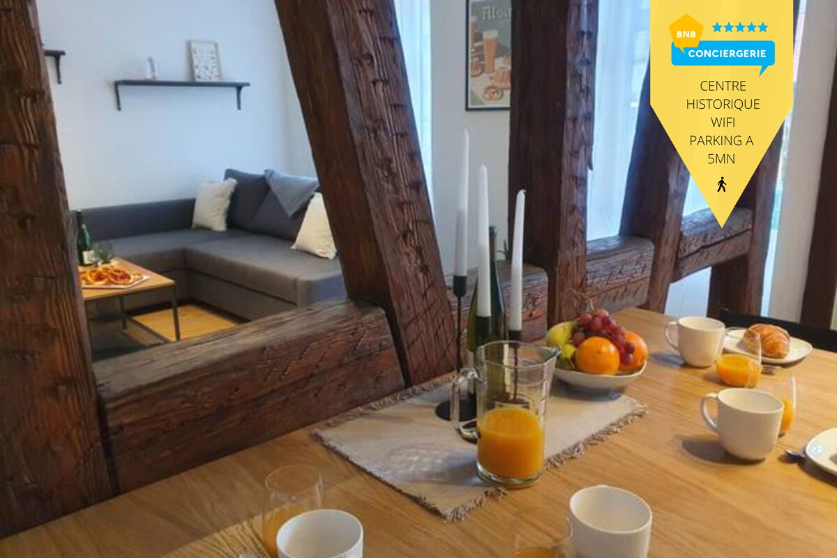 Explorez l'Alsace depuis notre studio rénové en juillet 2024, niché au cœur de la vieille ville. Idéal pour 2 personnes, ce pied-à-terre allie charme alsacien et confort moderne avec une cuisine équipée. Profitez d'une base parfaite pour découvrir la région, à quelques pas du centre-ville et de ses commerces. À pied : Centre-ville : 2 min Gare : 20 min En voiture : Colmar : 15 min | Strasbourg : 30 min Route des vins : 5 min Château du Haut-Koenigsbourg : 20 min Europa Park : 40 min