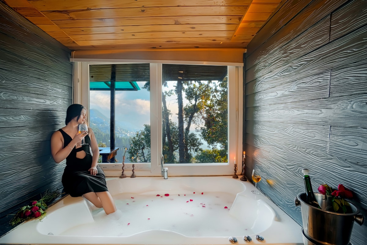 The Pelican by "The Skydrift" is an offgrid treehouse with private JACUZZI located just 5kms from the Mussorie Mall road. Enjoy peace and privacy in the middle of this pine forest with only trees being your neighbours. This Treehouse features a heated ensuite washroom with jacuzzi with mesmerizing valley view from the jacuzzi window. Enjoy the comfort of a cozy,fully-equipped space with a private balcony. It is equipped with a double bed, a small sitting, microwave, mini fridge & oil heater.