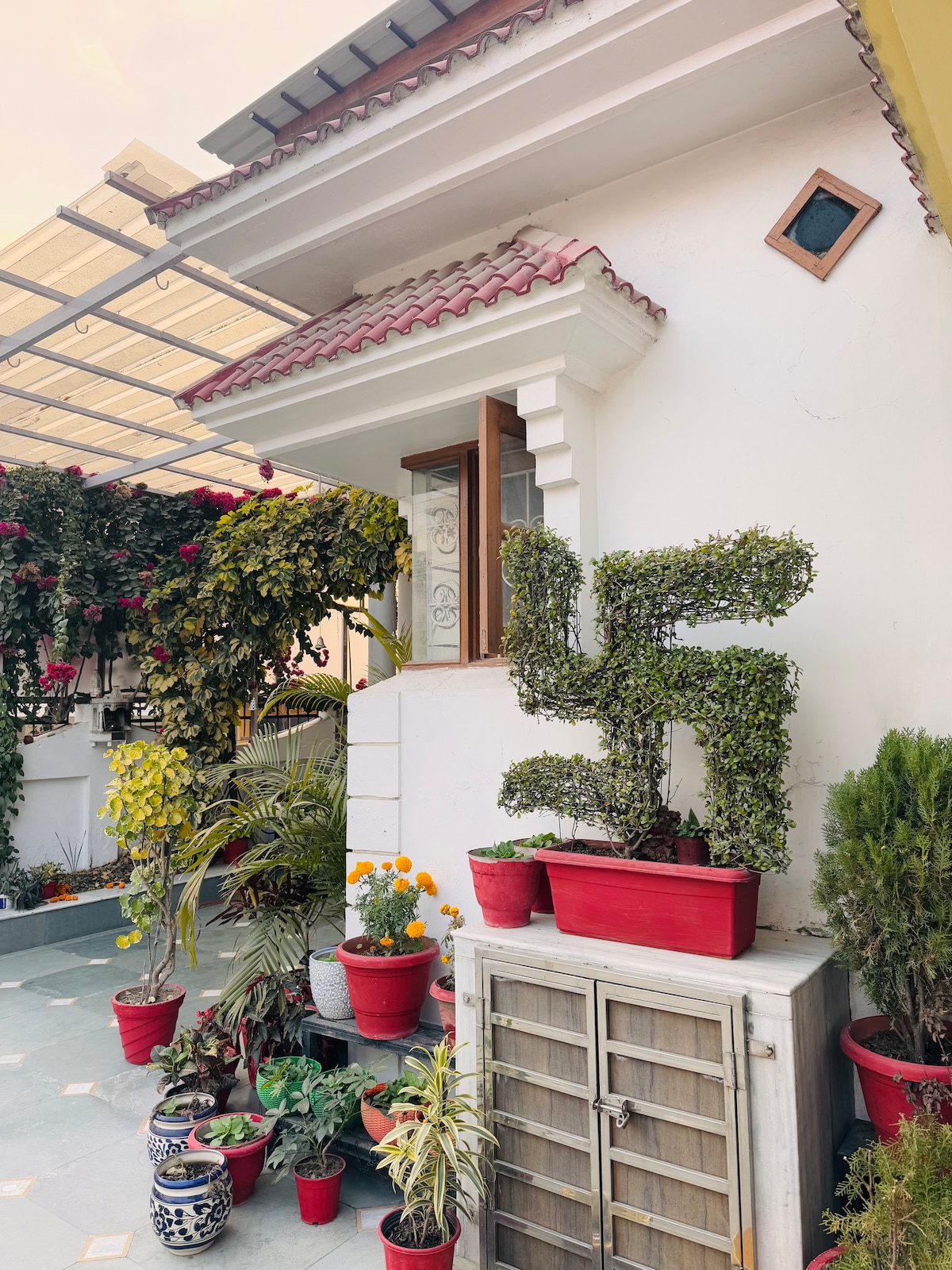 Lal Kothi is chef Sameer Sewak & his family's home in countryside Dehradun. It is surrounded table top views of Mussoorie hills, Tons river, Sal forests. Guests get the 2nd floor with a private access. The space includes 2 bedrooms, a kitchen/lounge, 2 terraces & balconies. Included in your stay is a complimentary breakfast. Guests get to order vegetarian & non-vegetarian delicacies for lunch & dinner from the dehradun famous Awadhi cuisine menu designed by Chef Sameer & his mother Swapna.