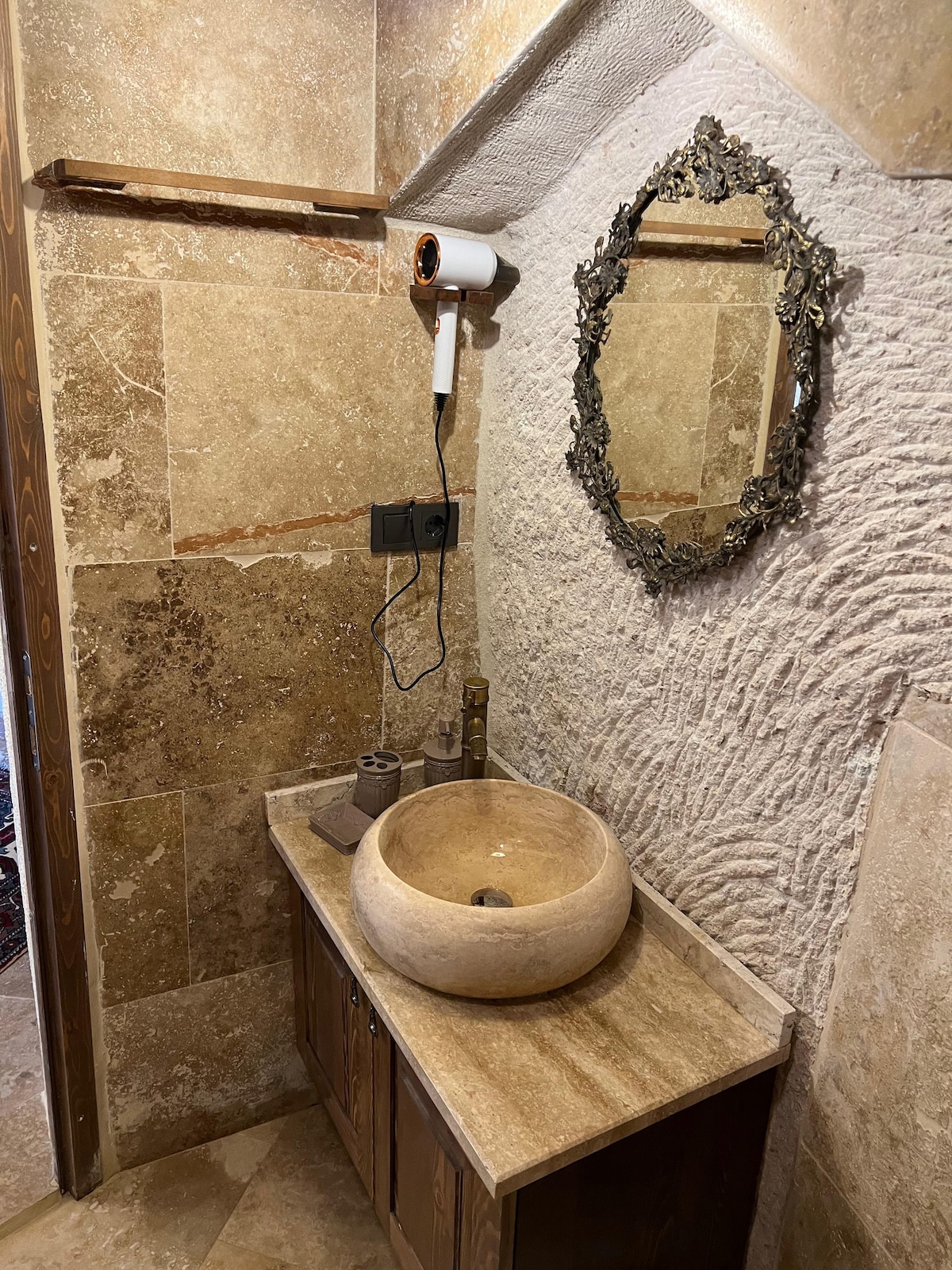 Welcome to Lost Villa, a beautifully restored three-story cave home nestled in the heart of Mustafapaşa — a quiet, historic Greek village in Cappadocia. Step back in time while enjoying modern comforts in this unique cave retreat, perfect for couples, families, or small groups. Wake up to silence, enjoy coffee on the balcony with a view of the village rooftops, and explore nearby fairy chimneys and hiking paths. In the evening, relax in your cozy cave bedroom or dine at one of the restaurants.