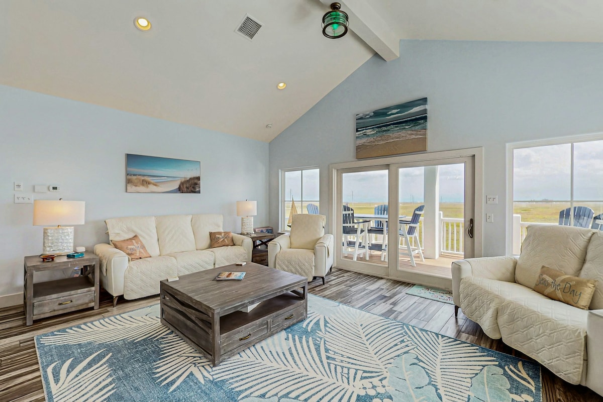 This is a beach front property on North Beach. Sunrise views. We are the only beach house on the beach. This is close proximity (5 min drive) to the Texas State Aquarium & Lexington Museum or use the beach walk from outside the home all the way down as well. Fishing area & play area is walking distance. Great place to enjoy the sun and the beach ! This house is clean and ready to enjoy your vacation. We have another house across the street to accommodate more guests up to 8 more, message me.