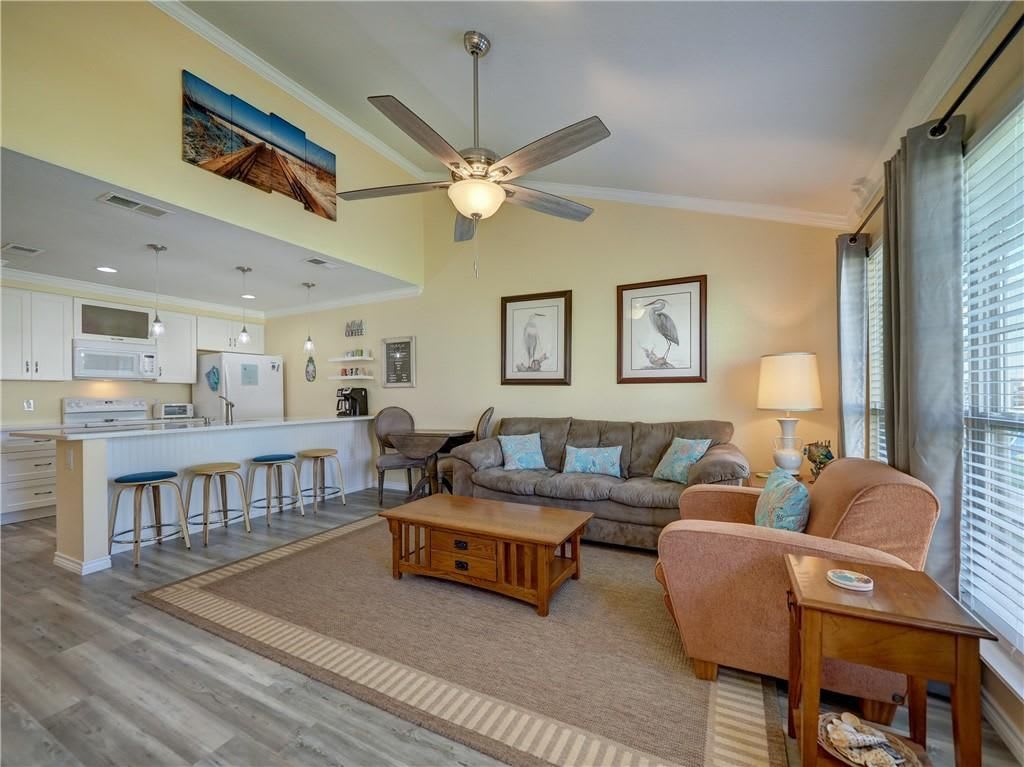 Beautifully decorated and updated this first floor one bedroom condominium is walking distance to the beach. Located next to the pool this unit is fully furnished with everything you'll need for a relaxing stay at the coast. Take a leisurely stroll to the beach, go fishing at the Packery Channel Jetties or swim and relax by the pool or on the patio. Open for lunch and dinner head over to The Boat House Bar & Grill for some great views, food, fun and drinks. Cart rentals within walking distance.