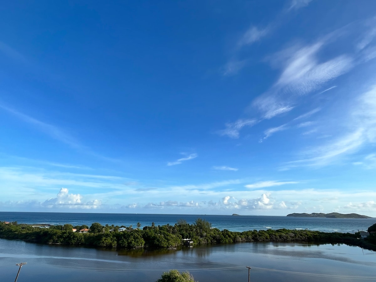 Premium accomodation at no additional $. FREE SHUTTLE SERVICE TO AND FROM AIRPORT WITH MINIMUM OF 7 DAY STAY AND NON DISCOUNTED RATE. Free washer and dryer. Want to hike a volano? No problem. Want to visit a rain forest? No problem. Want a chef to prepare a meal for you? No Problem we can help arrange for you Deck has best Views in St Vincent, breathtaking! THE BEACH IS A COUPLE MINUTE WALK NEW!! WE NOW OFFER A MINI SPA ONSITE. Book your mani or pedi. Close to dining, shopping, nightlife.