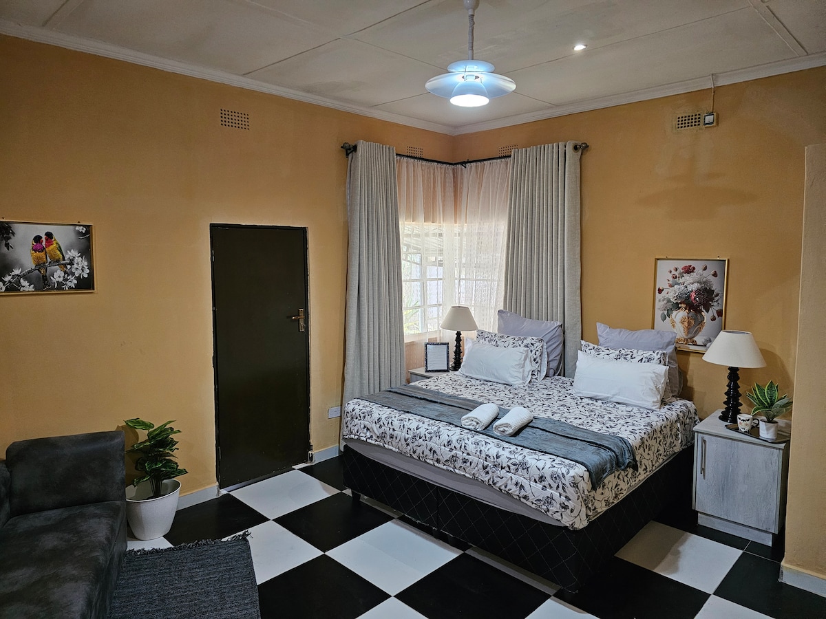 My place is good for couples, solo adventurers, business travelers.Please note there is an additional fee for the second person. We are situated approximately 3 kms from the city centre. We have solar lights, solar geyser and a gas stove. The flat is well secured, you also have access to a communal patio and stroll around the garden
