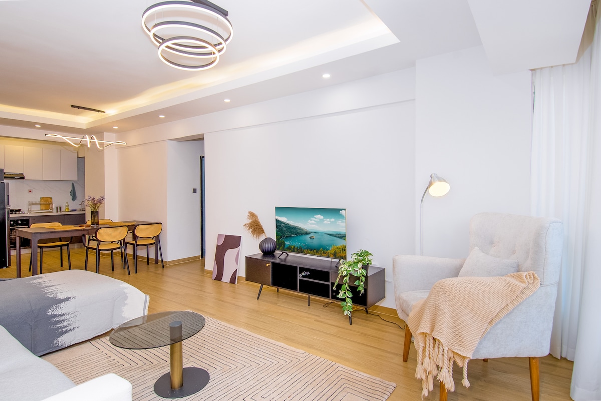Welcome to your stylish home away from home. A bright, thoughtfully designed apartment located in Westlands. You'll love the *Cozy, sunlit living room *Private balcony *Fully equipped kitchenette *Comfortable dining area and minimalist décor *High-speed Wi-Fi, plenty of natural light, and a peaceful, secure building * Swimming pool * Fully equipped gym Westlands is one of Nairobi’s most dynamic and cosmopolitan areas. You’ll be minutes away Sarit Centre, Westgate, The Mall *Orthopedic Bed