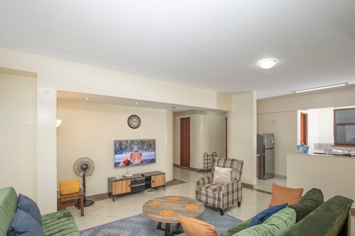 A stylish executive apartment with its own electricity backup. Close proximity to Quickmart, Valley Arcade, Yaya Center and CBD. A gamers haven with a Play Station 5. This tastefully furnished home offers serenity, ambience, peace and quiet to enjoy your stay. Enjoy entertainment on our 75 inch TV, complete with YouTube Premium, Netflix and Free IPTV for all your Live Viewing, Movies and Series. The same is also available in the Master Bedroom TV. The building also boasts a fully equiped gym.