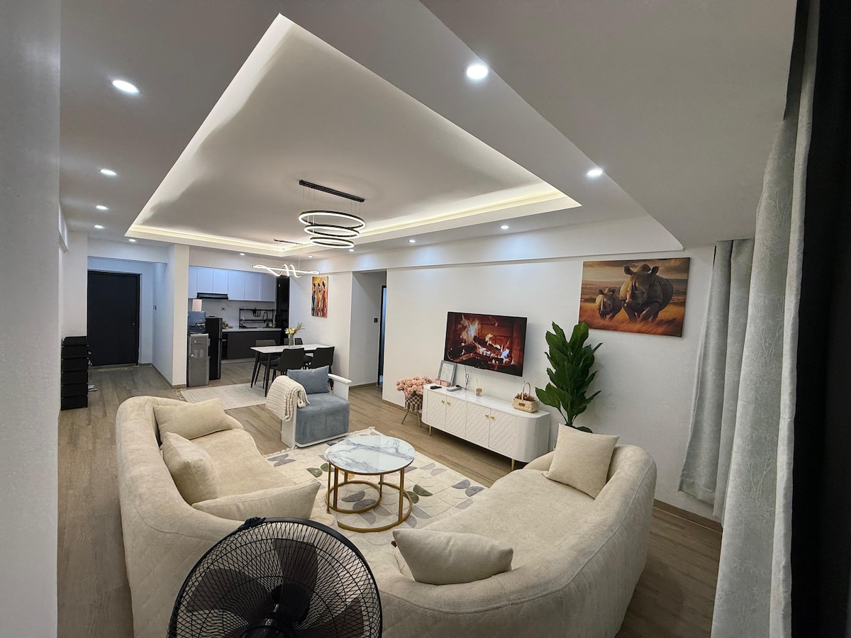 Westlands, Marina Bay Square — Sports Road 2 Bed 2 Bath Experience luxury in this limited edition 16th-floor apartment at Westlands' new Marina Bay Square. Fully furnished with elegant wooden accents, enjoy stunning Nairobi Skyline views. Features include reliable Wi-Fi, modern kitchen, in-house washer, 2x weekly cleaning, 24/7 power (generator backup), gym, rooftop pool, and UN-approved 24/7 security/CCTV. Steps from Sarit/Westgate. Building boasts a 270° cafe; rooftop bar coming soon.