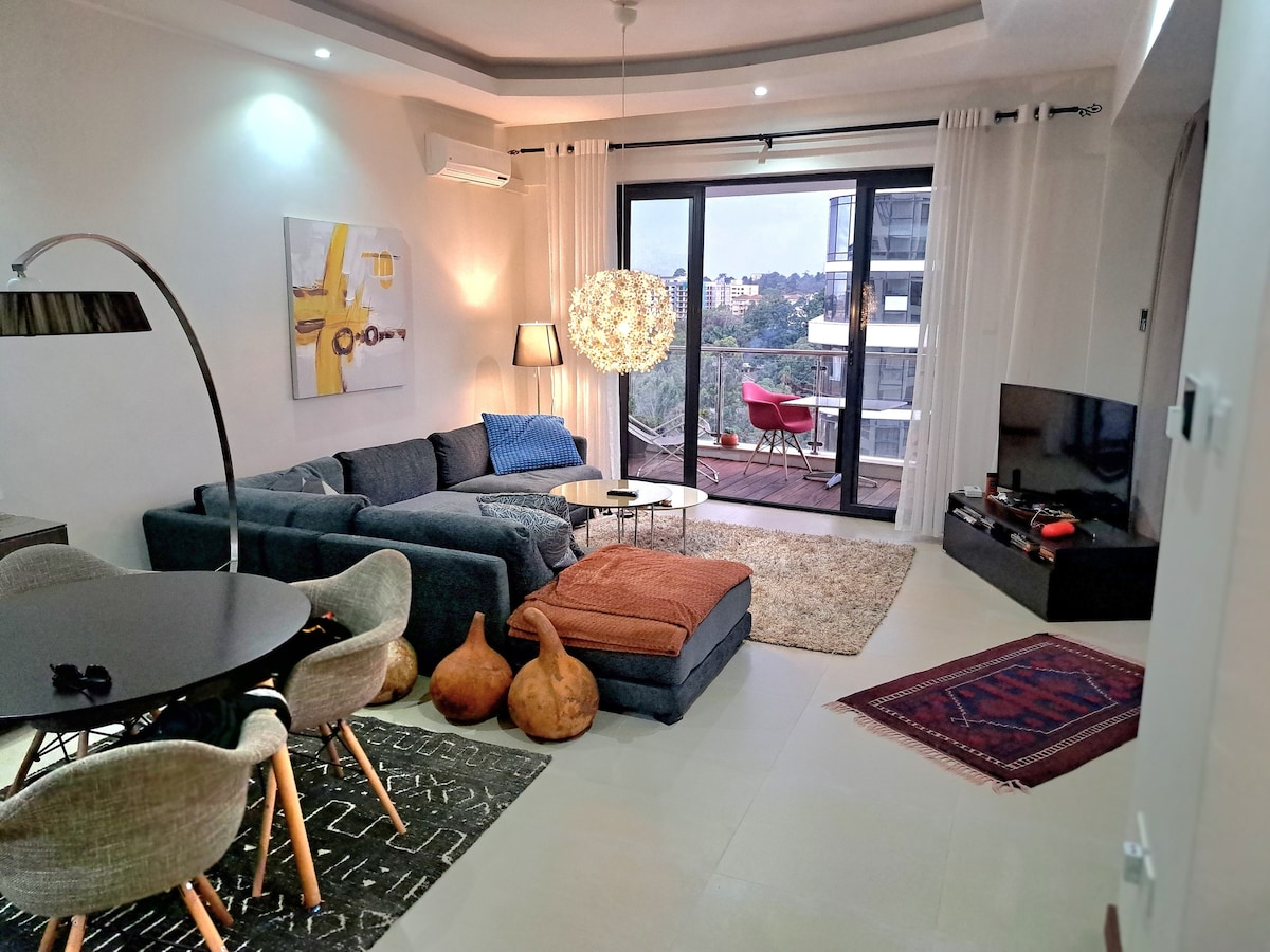 Kick back and relax in this calm, stylish space. Its close to everything, making it easy to plan your visit with en-suite bathroom, eloquent dining room, bedroom & lounge Netflix-TV, balcony, kitchen and washing machine area. All amenities provided, including unlimited Fast WiFi and business facilities. Situated in a quiet leafy suburb, but also conveniently close to Westgate, Sarit and Lavington shopping malls, restaurants, business hubs, CBD and few meters walk away from Westlands nightlife.