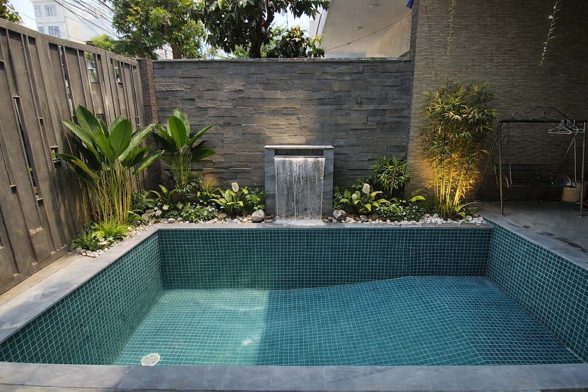 This is the Danang Blue Points Pool Villa. The villa is entirely private (free pick-up service). This pool villa is perfect for a vacation with friends or family. The villa is located on An Thuong Foreign Street, surrounded by cafes, spas, restaurants, supermarkets, and bars. My Khe Beach is a 5-minute walk away. The airport is a 10-15 minute drive. The swimming pool measures 3.2m x 8m (1.4m deep). Purified water is available in the kitchen.