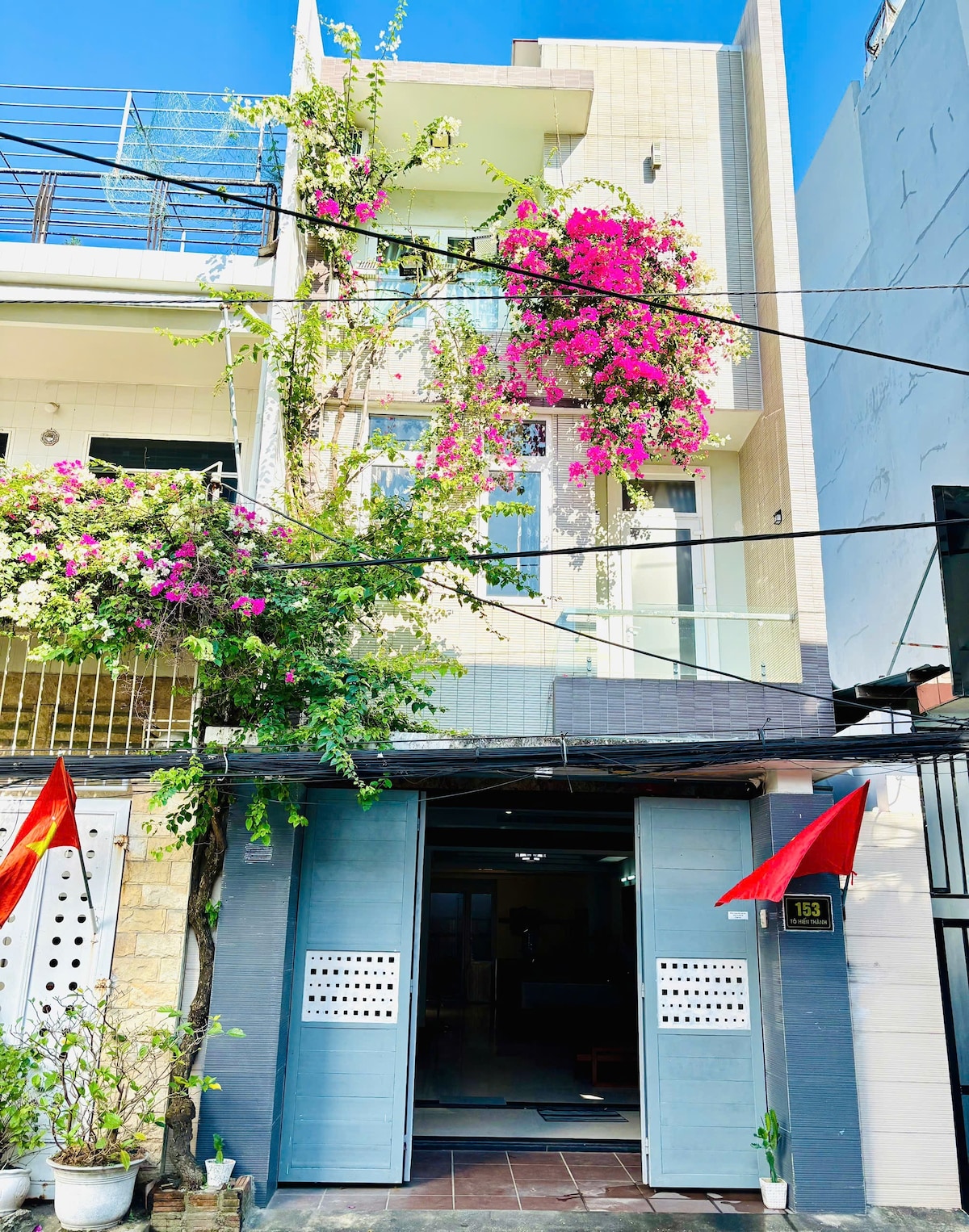 Enjoy coastal living at a spacious 4 Bedrooms with easy car access on a main road, just 2min from My Khe Beach. The 200sqm house is ideal for families, blending French-colonial charm with modern comforts: -4 beds | up to 10 guests -5 bathrooms (rain showers + bathtubs) -Living room + Smart TV -Full kitchen & 2 dining tables -Ultrafast Wi-Fi (500Mbps) Located in lively An Thuong – Da Nang’s international hub of dining, cafes & nightlife – all just steps from the sea!