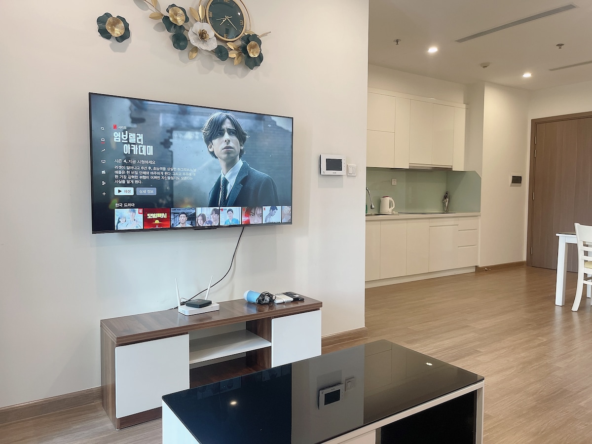 High-end apartment at Vinhomes Smart City with full amenities for couples, tourists or business travelers. Here you will rest and relax in a peaceful, luxurious space. Utilities include: 1. Indoor swimming pool 2. Outdoor swimming pool (seasonal) 3. Gym 4. Working Space 5. Shopping and entertainment at Vincom Mega Mall. 6. Check-in and take virtual photos at Japanese Garden 7. Stroll between the blue sea and white sand in the heart of Hanoi. 8. BBQ Party